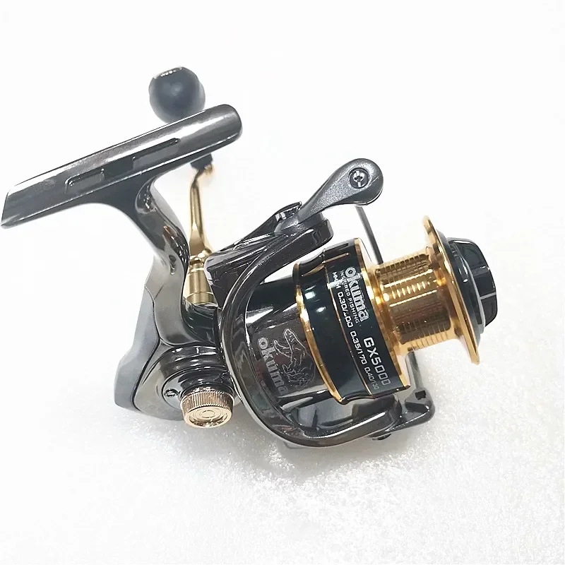 (1) Configuración del producto del carrete de pesca de la serie GX: copa de alambre tallado en aleación de aluminio, balancín plegable totalmente de metal, balancín que se puede intercambiar hacia la izquierda y hacia la derecha, sin estructura de reacción de espacios.