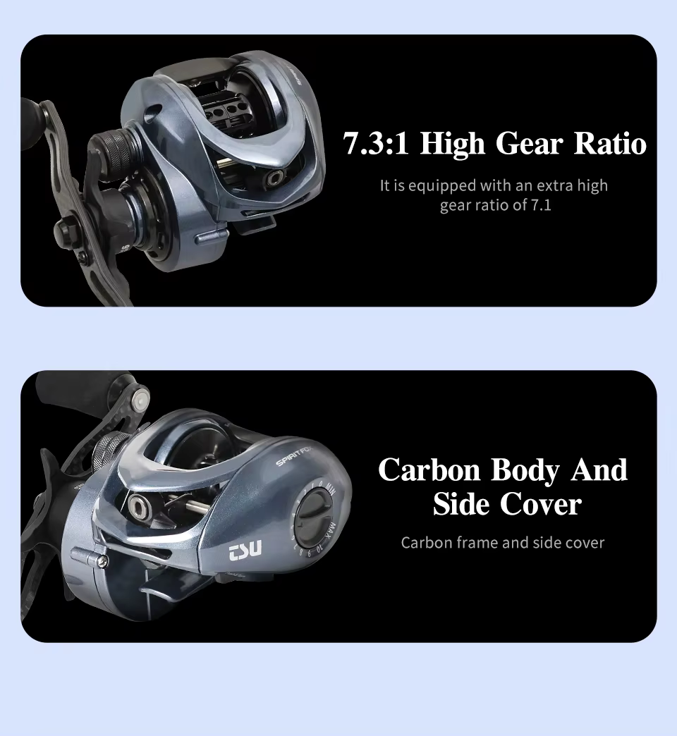 La precisión del lanzamiento también se mejora con el carrete de aleación de aluminio de 14,5 g, que puede soportar una amplia gama de pesos de señuelos, desde señuelos livianos hasta señuelos pesados, y, por supuesto, mejorar el rendimiento del lanzamiento.