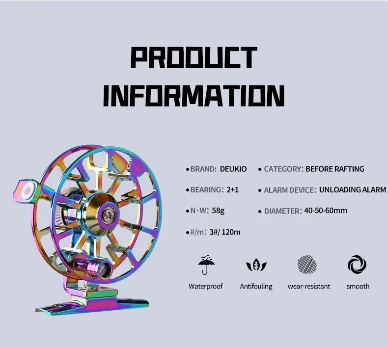 • Rueda de pesca de hielo:Diseñado específicamente para la pesca en hielo, este carrete es perfecto para la captura de peces a través de agujeros en el hielo.