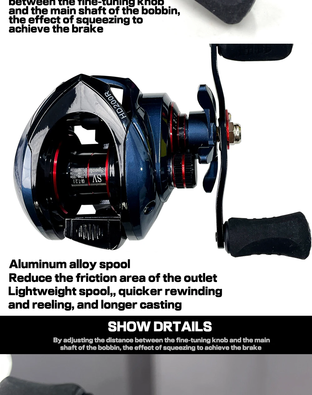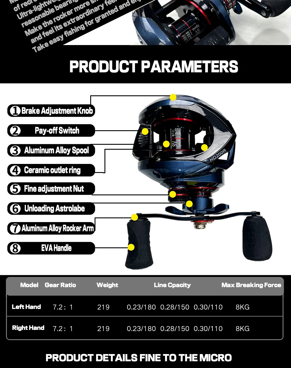 Equipped with universal long-range magnetic brakes, it features 8 strong magnetic stones for precise and smooth casting. It also comes with a wide-angle line outlet for smooth, efficient line flow that won't damage or snag your fishing line. Adjusting the line is easy with the finely tuned micro-adjustment knob, ensuring that you achieve maximum efficiency with each and every cast.