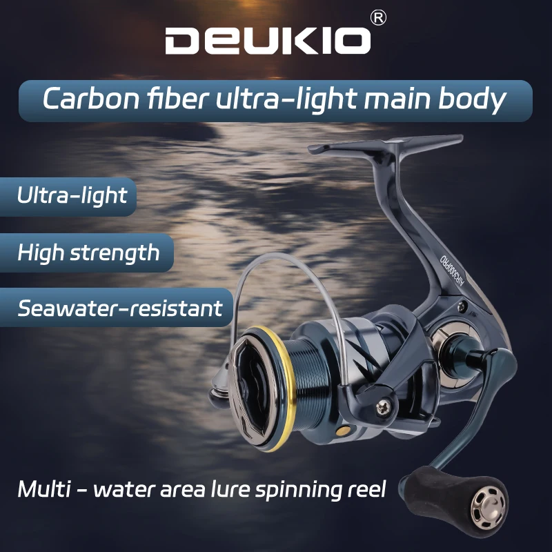 Carrete de pesca ultraligero DEUKIO MAX Drag Power 18lbs carrete de aluminio alarma de pescado carrete giratorio de cuerpo principal de fibra de carbono para agua salada