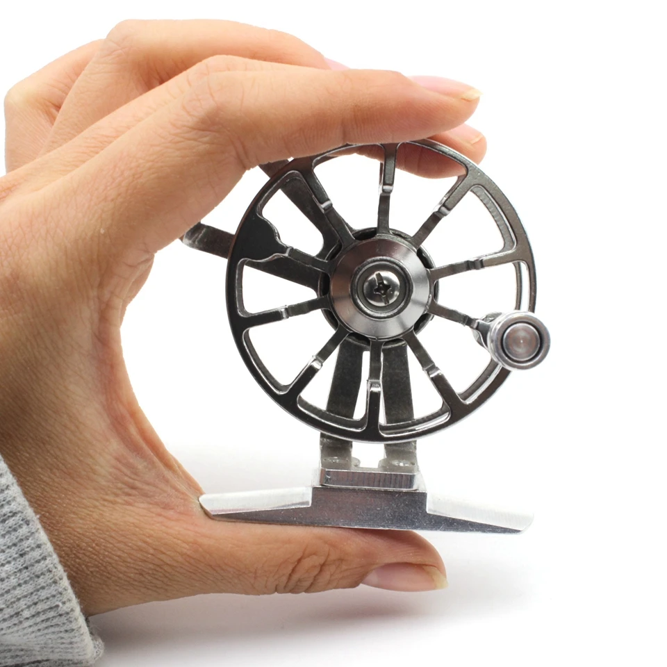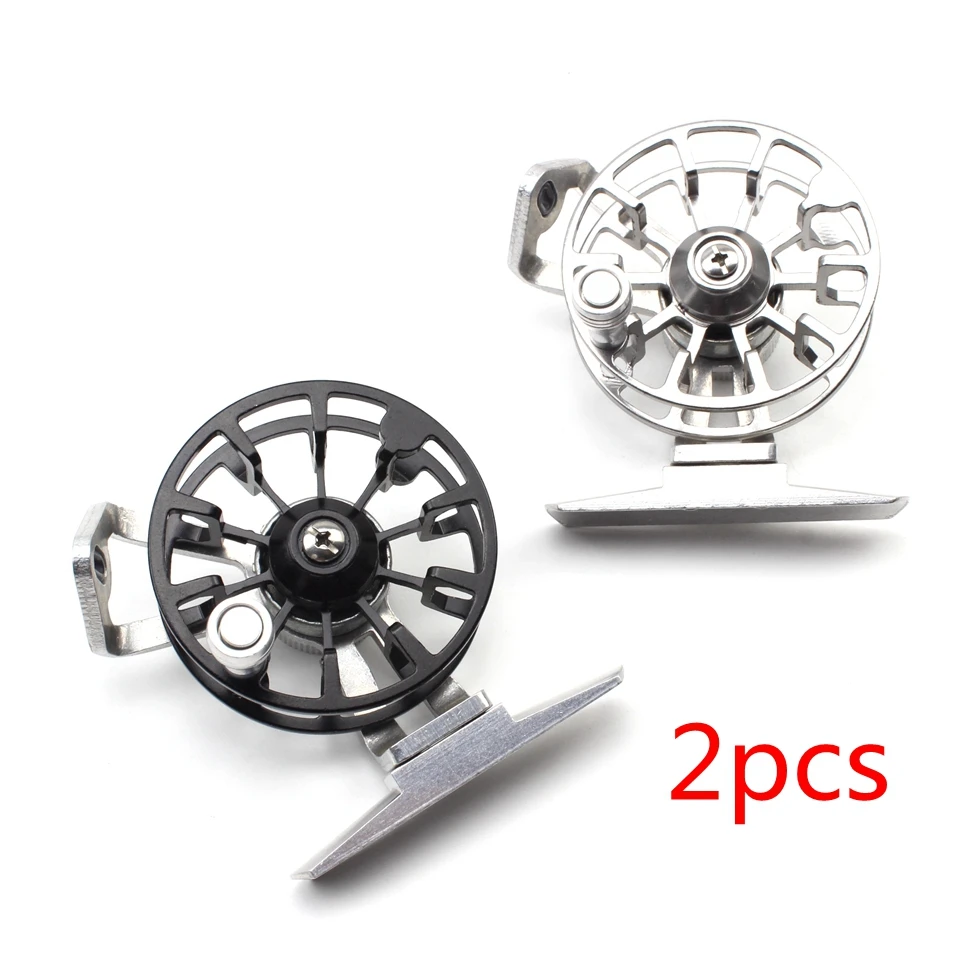 Carrete de pesca ultraligero en hielo, Mini línea de poste, enrollador de cañas, rueda de pesca de camarón de Rafting, aparejos de pesca portátiles de Metal, 2 piezas