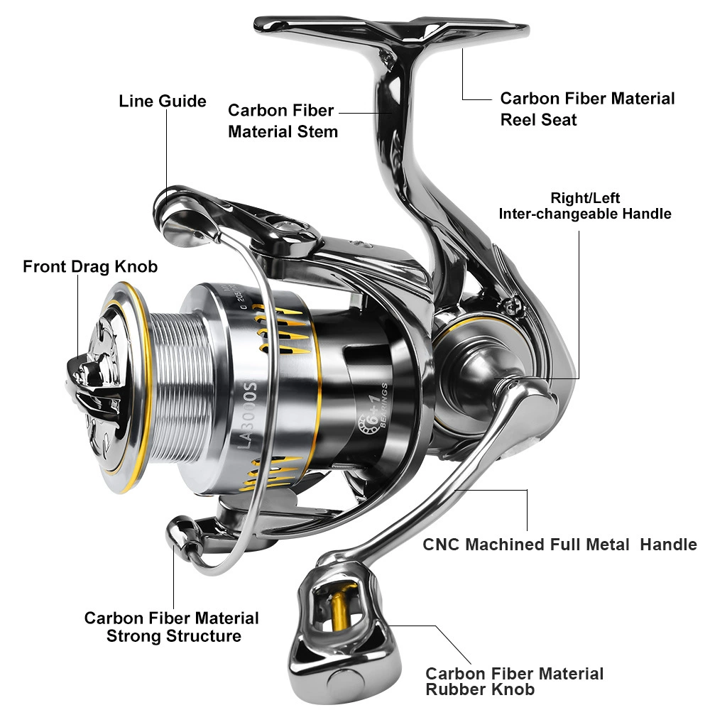 Carrete de pesca ultraligero de fibra de carbono serie LA1500S-LA3000S, arrastre máximo de 7kg, copa de línea de Metal, fundición larga, carrete de Metal de alta velocidad