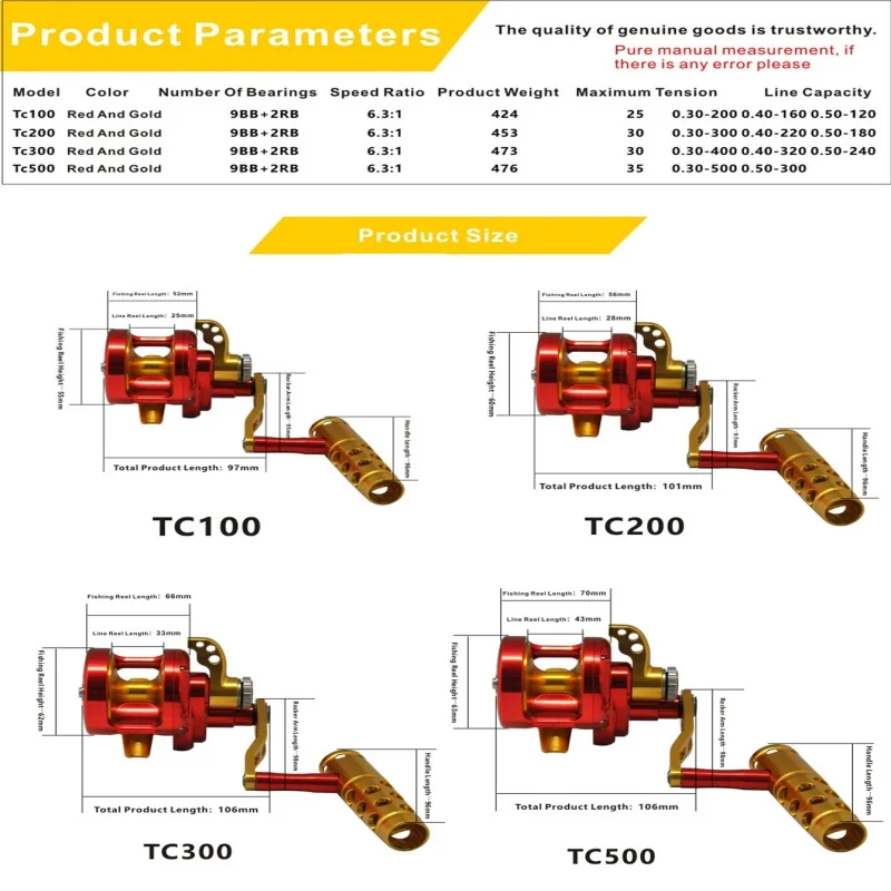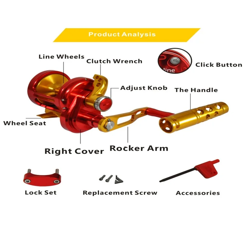 * Carrete de pesca de agua salada totalmente metálico.