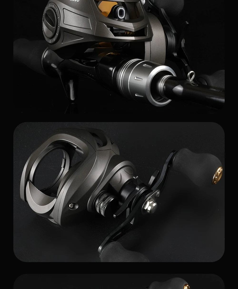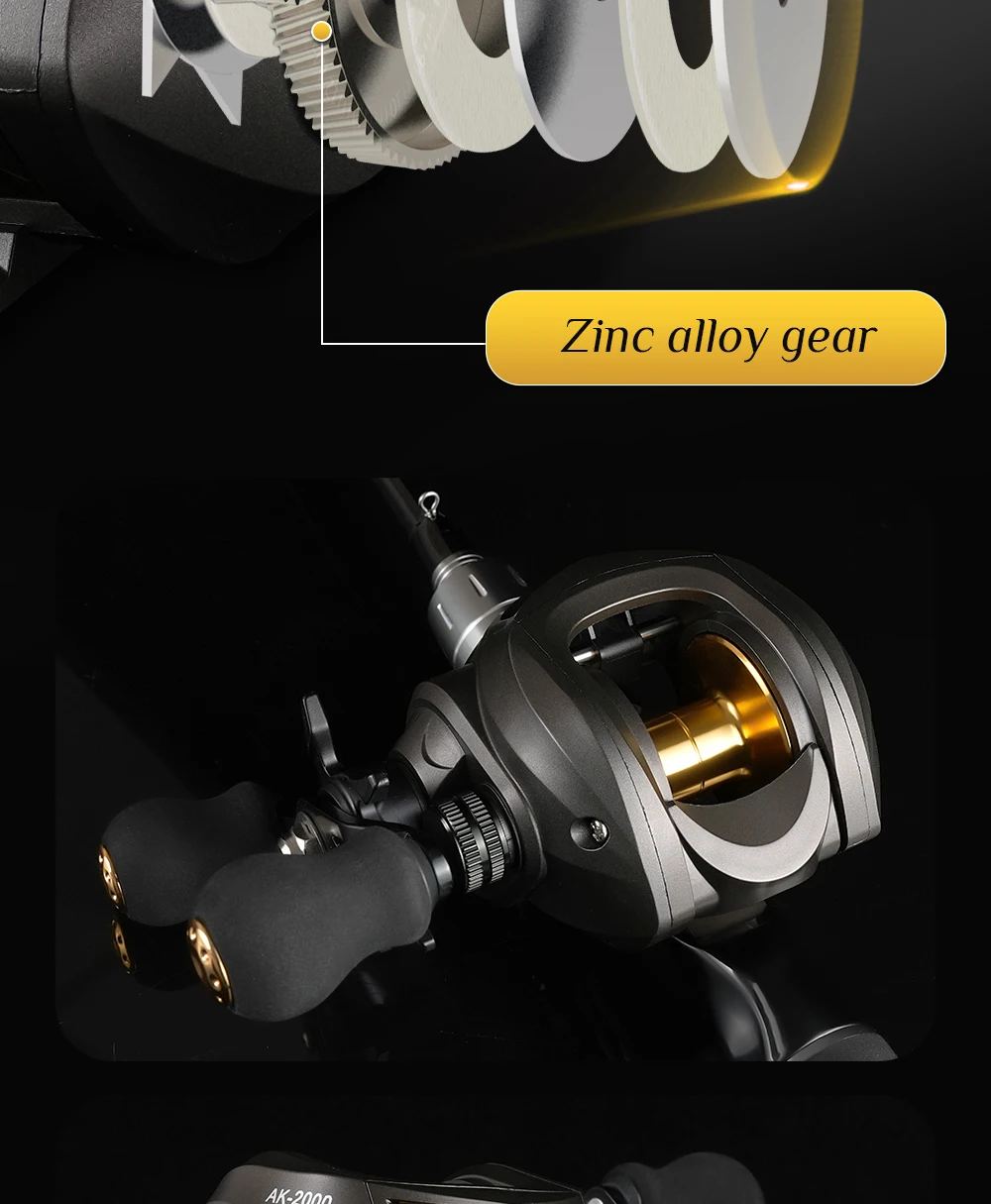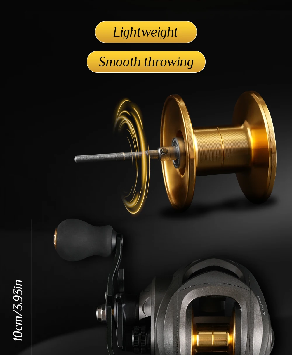 Carrete ROOBLINOS AK Baitcast 10 freno magnético 7,2: 1 relación de engranaje alarma clicker carrete de aluminio ligero carrete de pesca de fundición larga