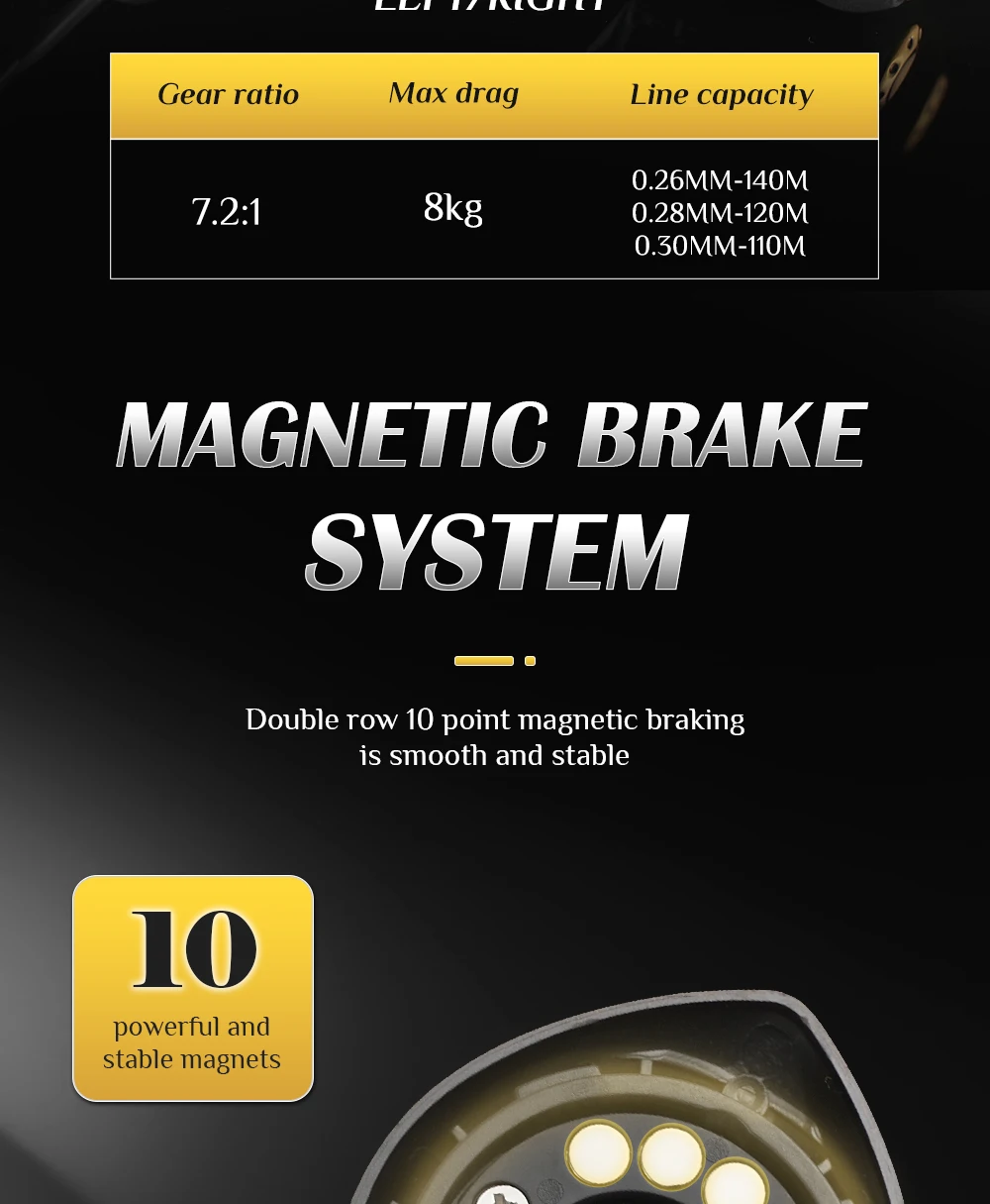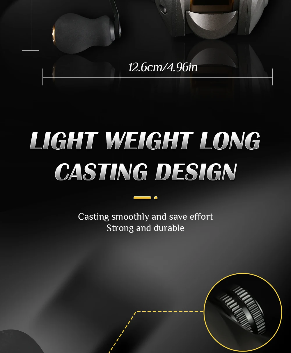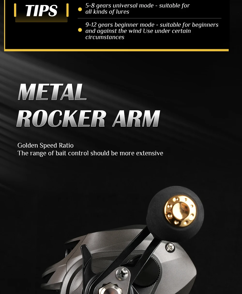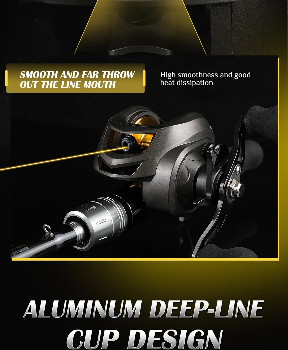 Carrete ROOBLINOS AK Baitcast 10 freno magnético 7,2: 1 relación de engranaje alarma clicker carrete de aluminio ligero carrete de pesca de fundición larga