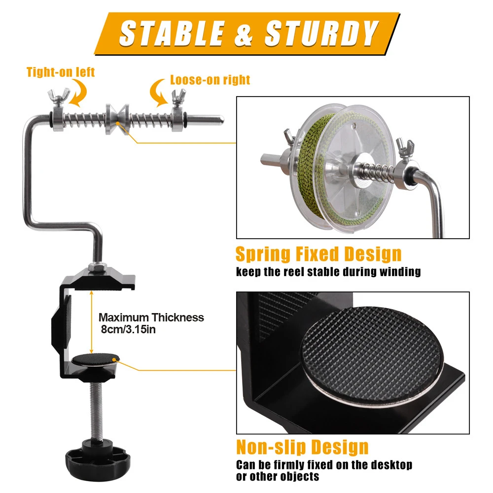 1.Carrete de hilo de pescar con abrazadera.Alfombrilla antideslizante incorporada, el clip es más estable y no se suelta fácilmente.La abrazadera es muy potente y resistirá la tensión del tirón de la línea.