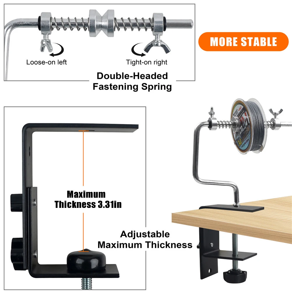 2.El ancho máximo del carrete: Modelo A de 3,35 pulgadas, Modelo B de 3,3 pulgadas se puede usar en más carretes con diferentes anchos.Abrazadera en C que se puede fijar a muchos lugares, hace que la pesca sea más conveniente.