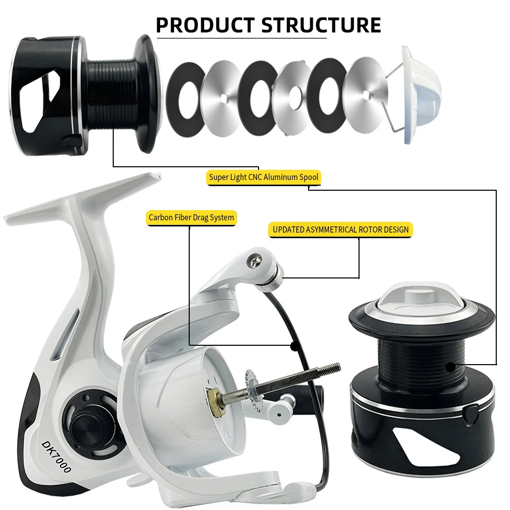 Metal ligero de aluminio 5,2: 1/5.1:1 carrete giratorio de pesca 10KG carrete de pesca de arrastre máximo Serie 2000-7000