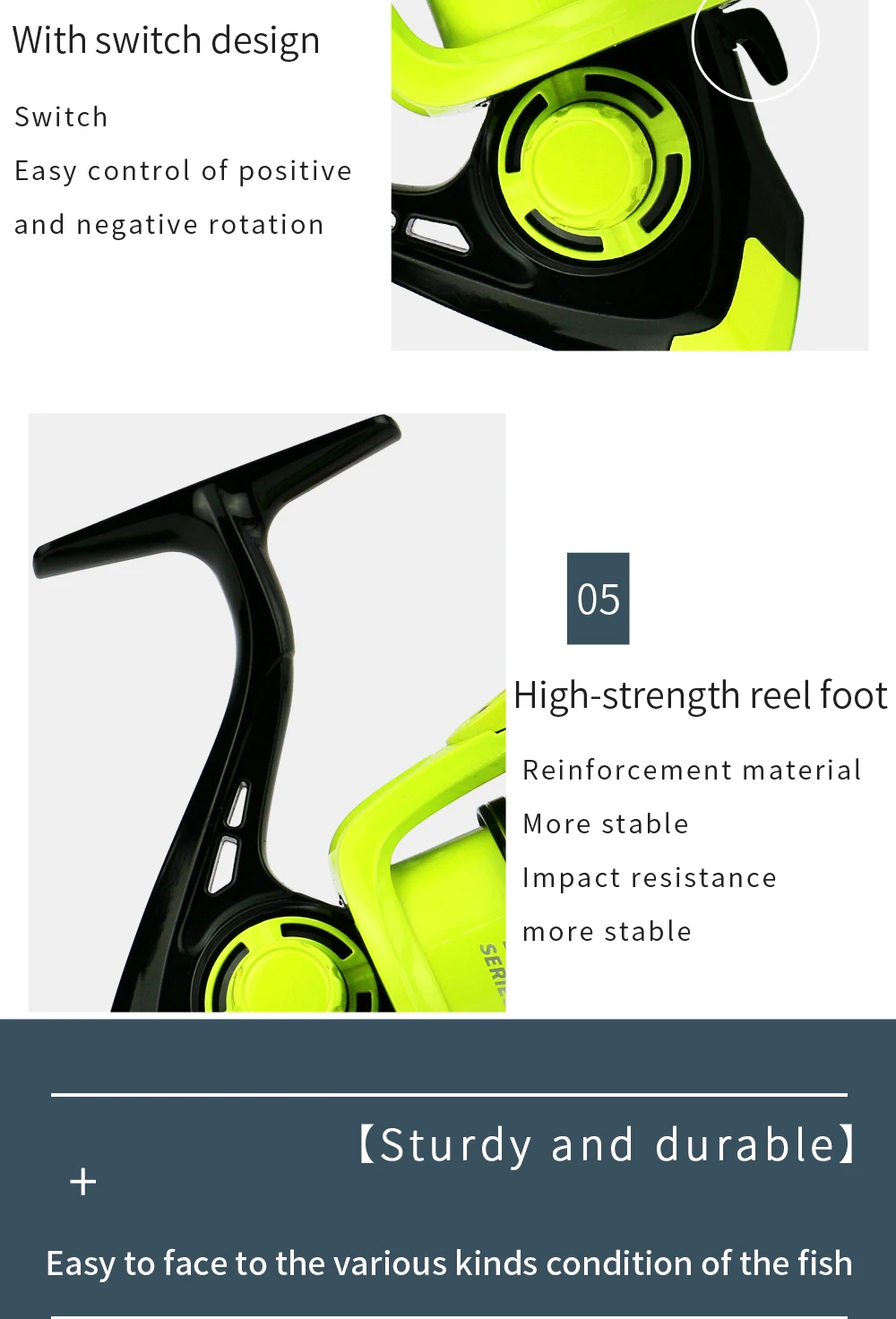 * Pies de carrete de alta resistencia, fabricados con material reforzado, más estables y resistentes.