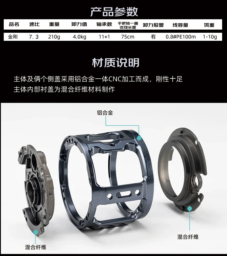 Los carretes están diseñados con una forma compacta y ergonómica, se ajustan cómodamente a la mano y brindan un mejor control durante el lanzamiento y el bobinado.