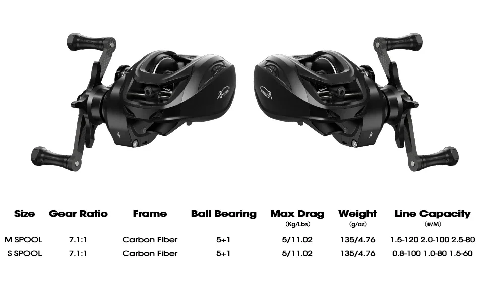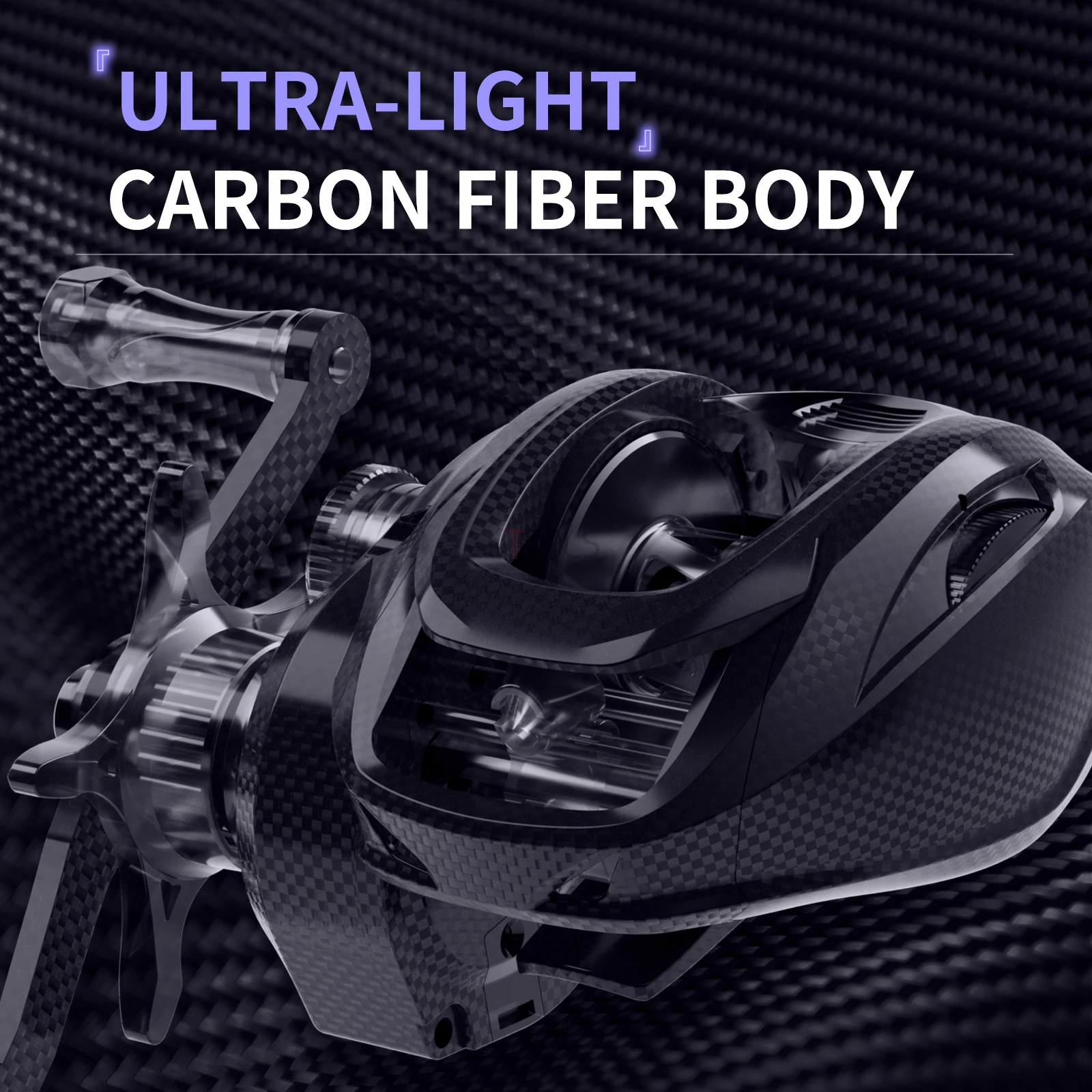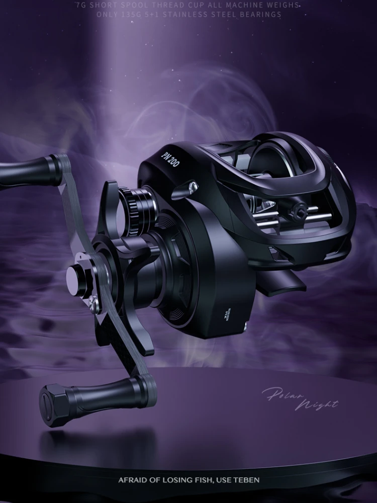 Carretes de Baitcasting ligeros de fibra de carbono PN, 135G, 7,1: 1, relación de engranaje de alta velocidad, carrete de eje corto perfecto para pescar