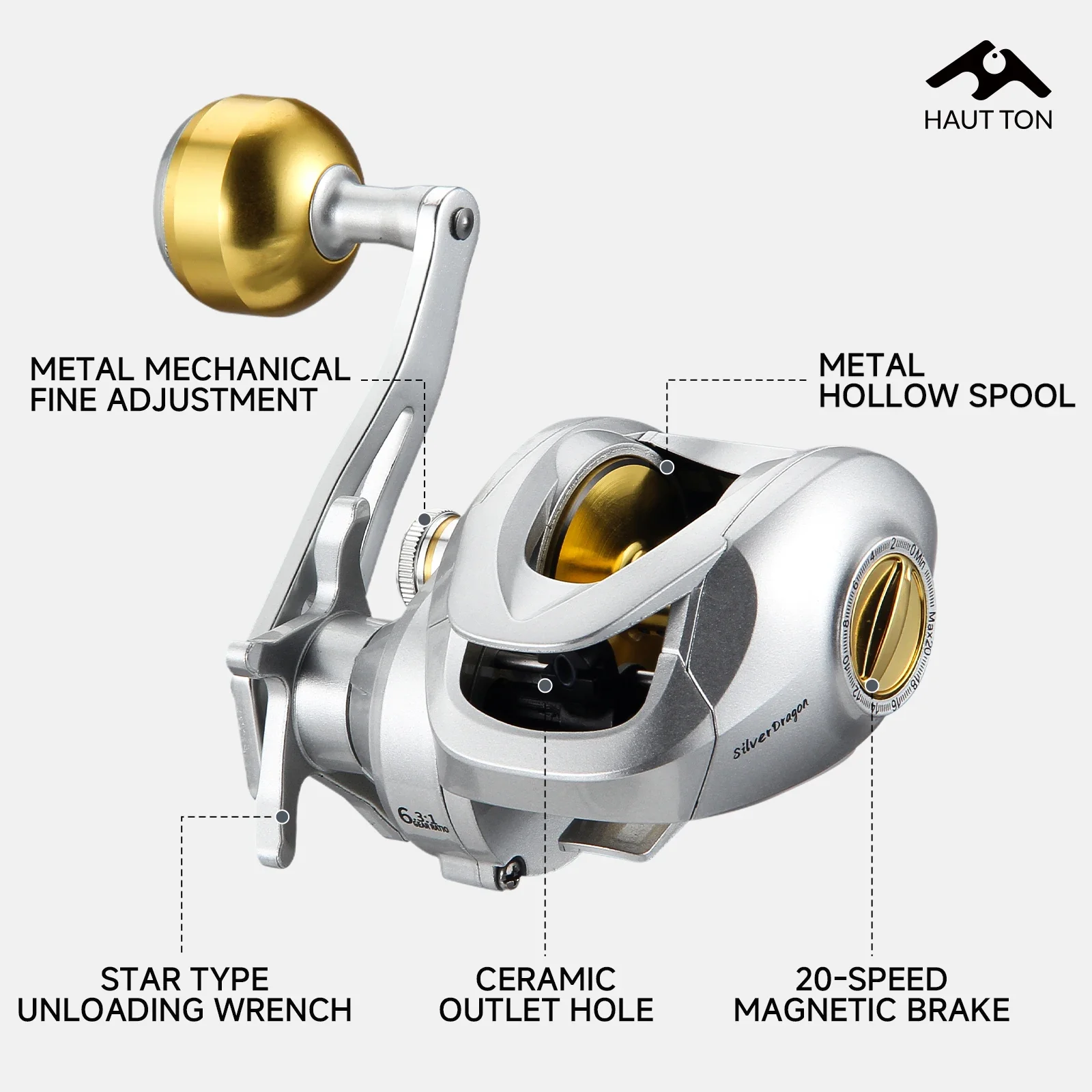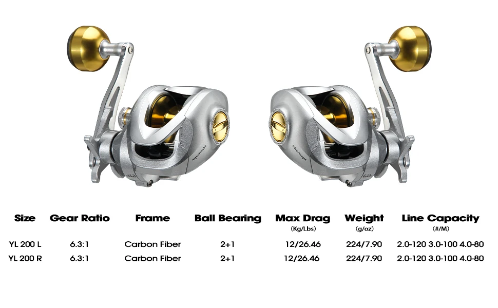 Carretes de Baitcasting de Metal YL200, relación de engranaje de alta velocidad 6,3: 1, arrastre máximo de 12KG, perfectos para pesca en agua dulce y salada