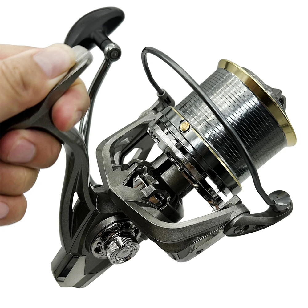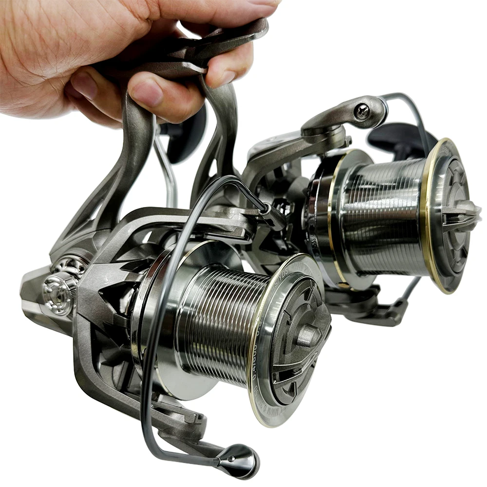 Carrete de pesca giratorio para juegos grandes, carrete de Metal antialgua salada