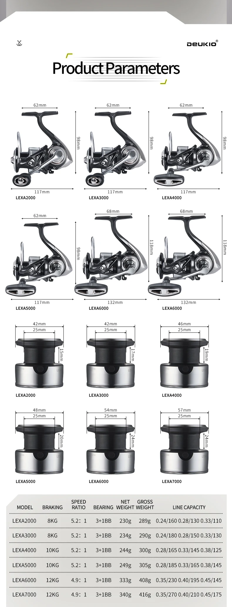 Nombre del producto: carrete giratorio LEXA