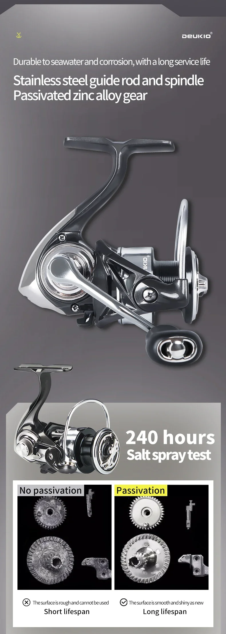 5.Varilla y husillo guía de acero inoxidable, disco dentado de aleación de zinc, resistente al agua de mar y la corrosión, con una larga vida útil;