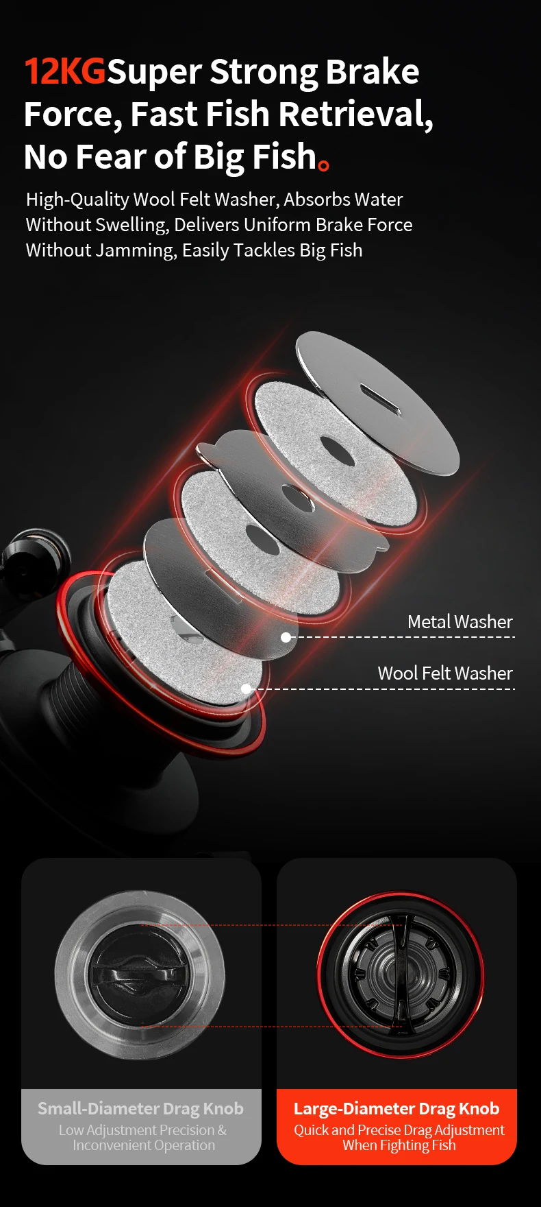 Equipado con una resistencia máxima de 12 kg, este carrete garantiza una pelea poderosa incluso con los peces más grandes.