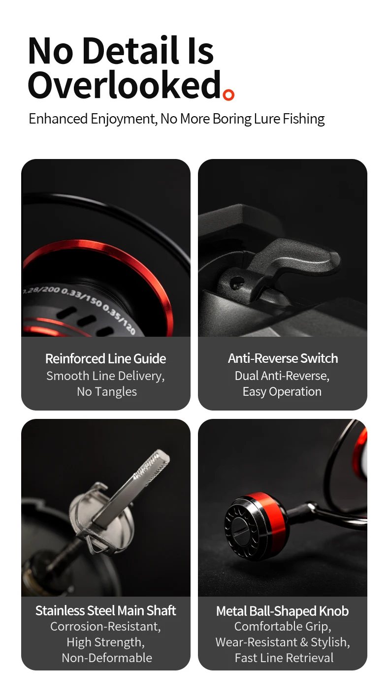 La rueda giratoria de precarga permite una instalación rápida y un uso sencillo, perfecta para pescadores impacientes.