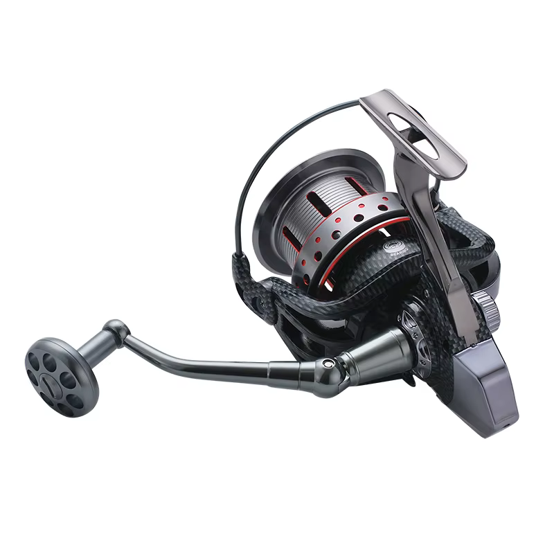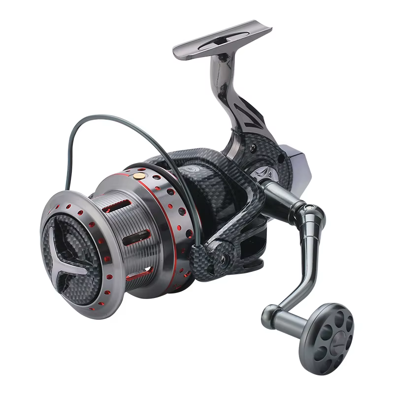 Carrete grande de aluminio con engranaje de alta resistencia. El sistema de arrastre de fibra de carbono proporciona un rendimiento de arrastre eléctrico.