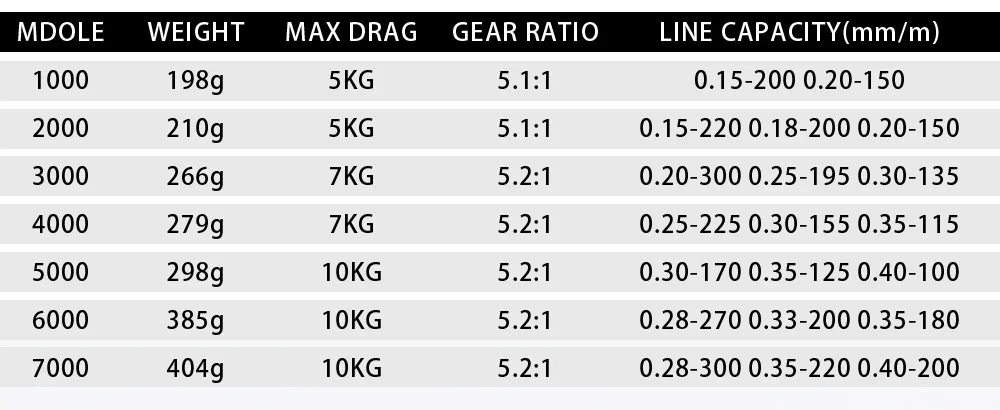 Nota: Este carrete de pesca no tiene la serie 1000. La serie 1000 en las opciones es la misma que la serie 2000. Enviaremos la serie 2000 por defecto.