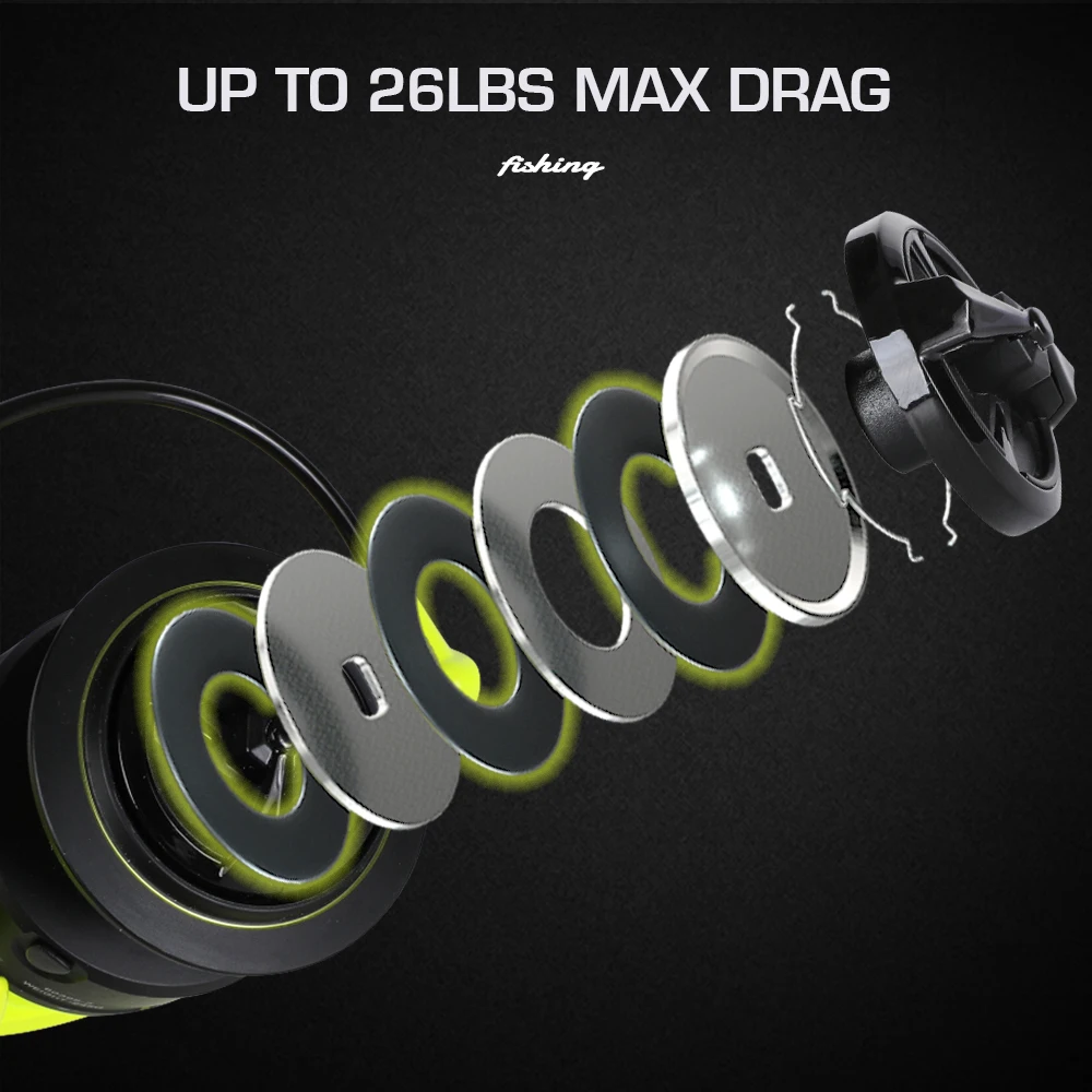 ● Potente Sistema de arrastre: arrastre máximo de 26 libras/12kg, el sistema de arrastre potente y fuerte ayuda a los pescadores a luchar con peces trofeo.