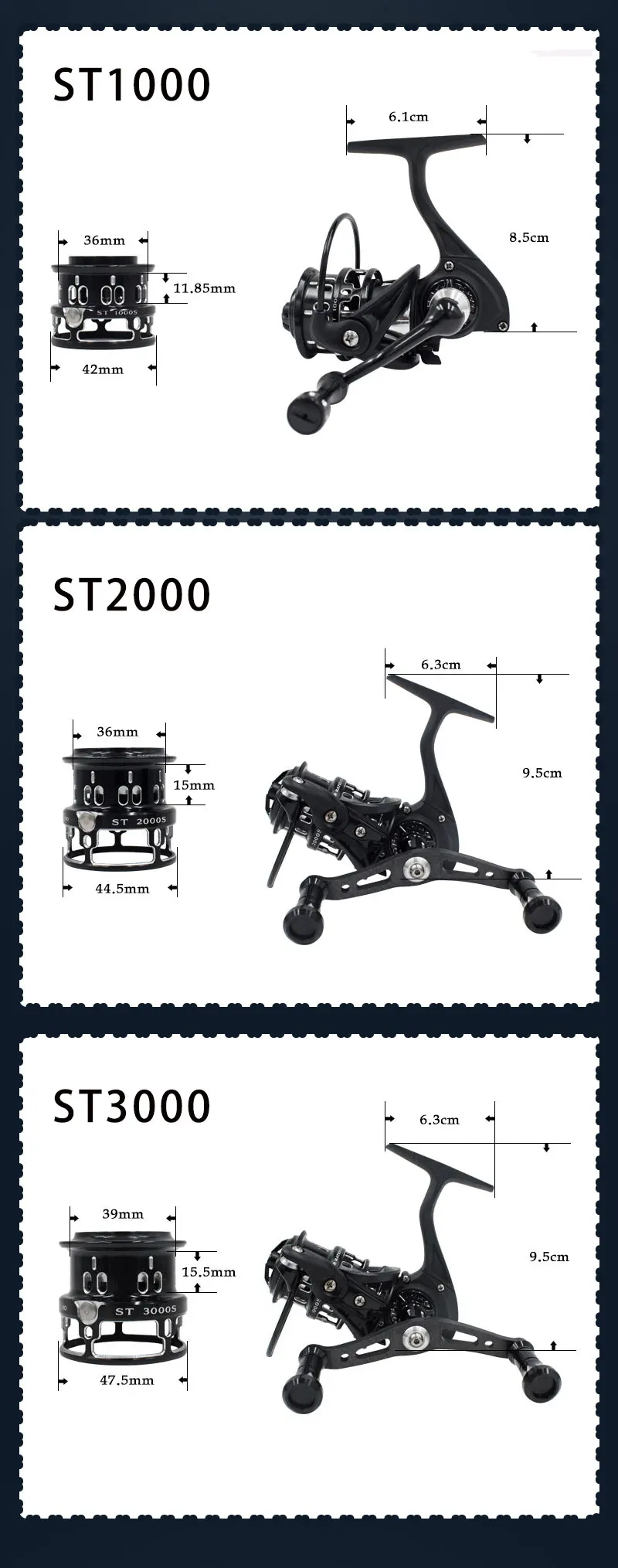 Carretes giratorios de pesca de carpa TAKEDO ST08 1000S 2000S 3000S doble agarre Peche Carretilha Baitcasting carrete giratorio agua salada