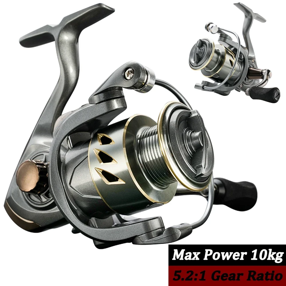 Carretes giratorios para Pesca, Carrete De arrastre máximo De 10KG, 5,2: 1, señuelo De alta velocidad para trucha, Peche, Lucio, Zander 2000-7000