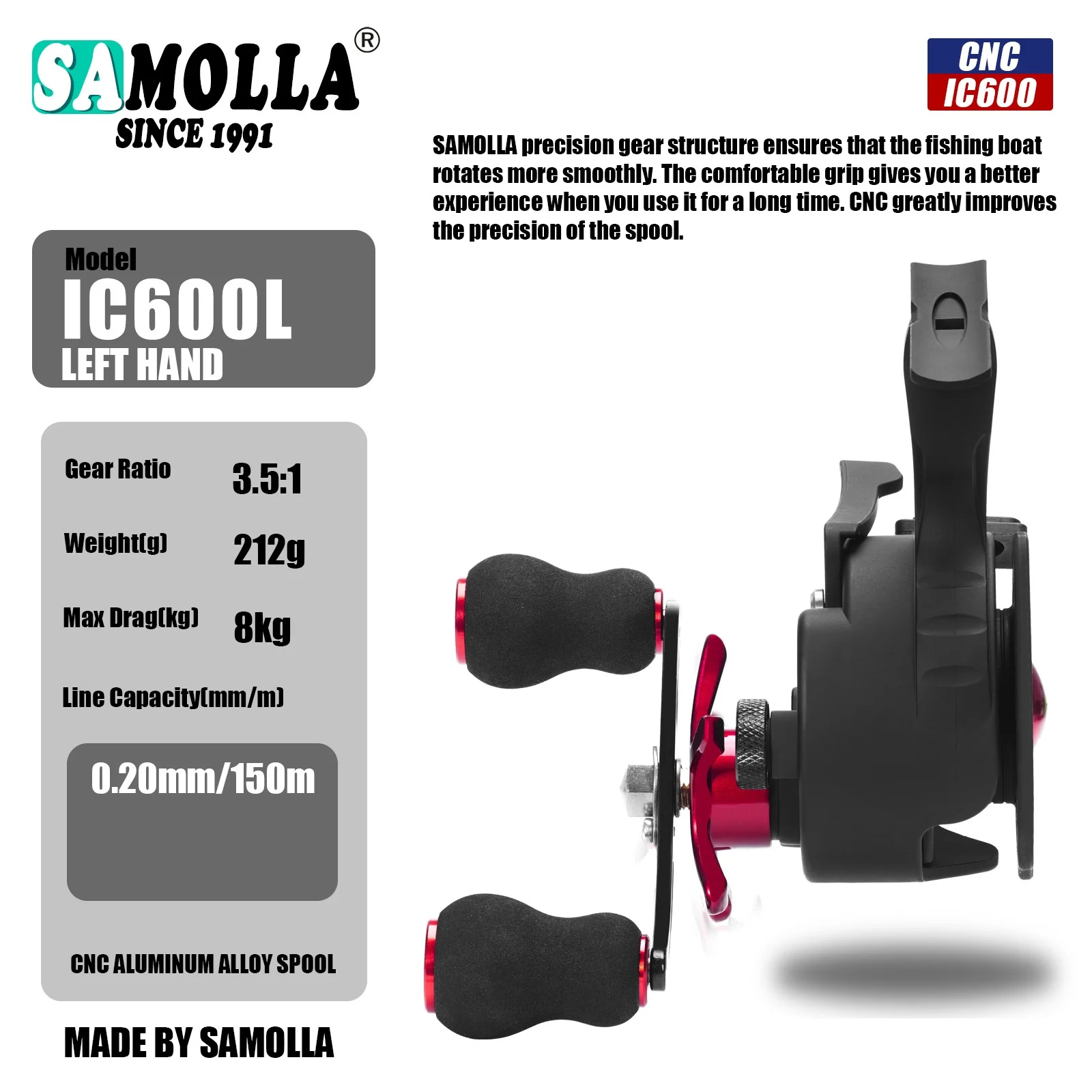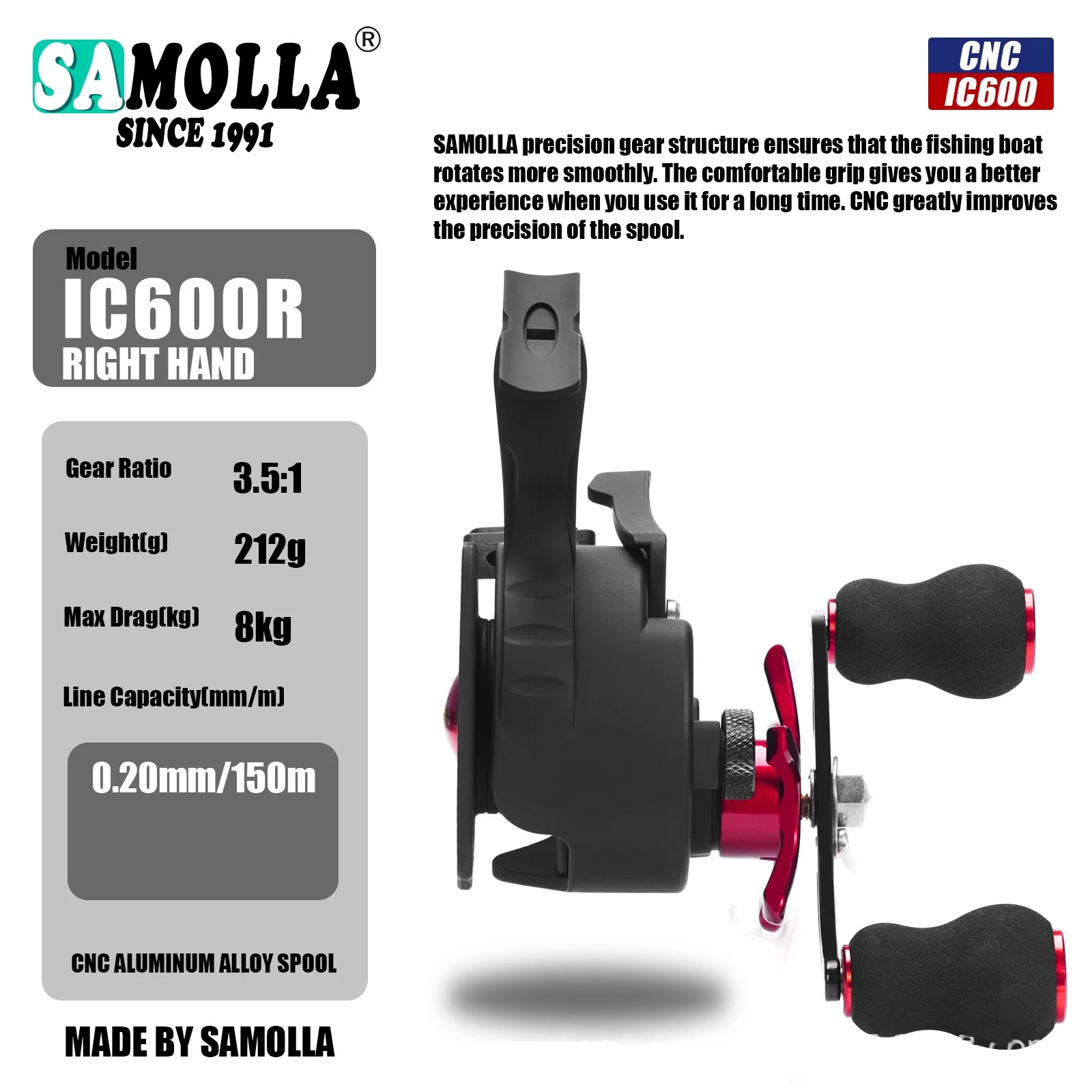 Carretes giratorios de pesca de mano derecha/izquierda de pie alto, relación de engranaje Universal 3,5: 1 para agua dulce y salada