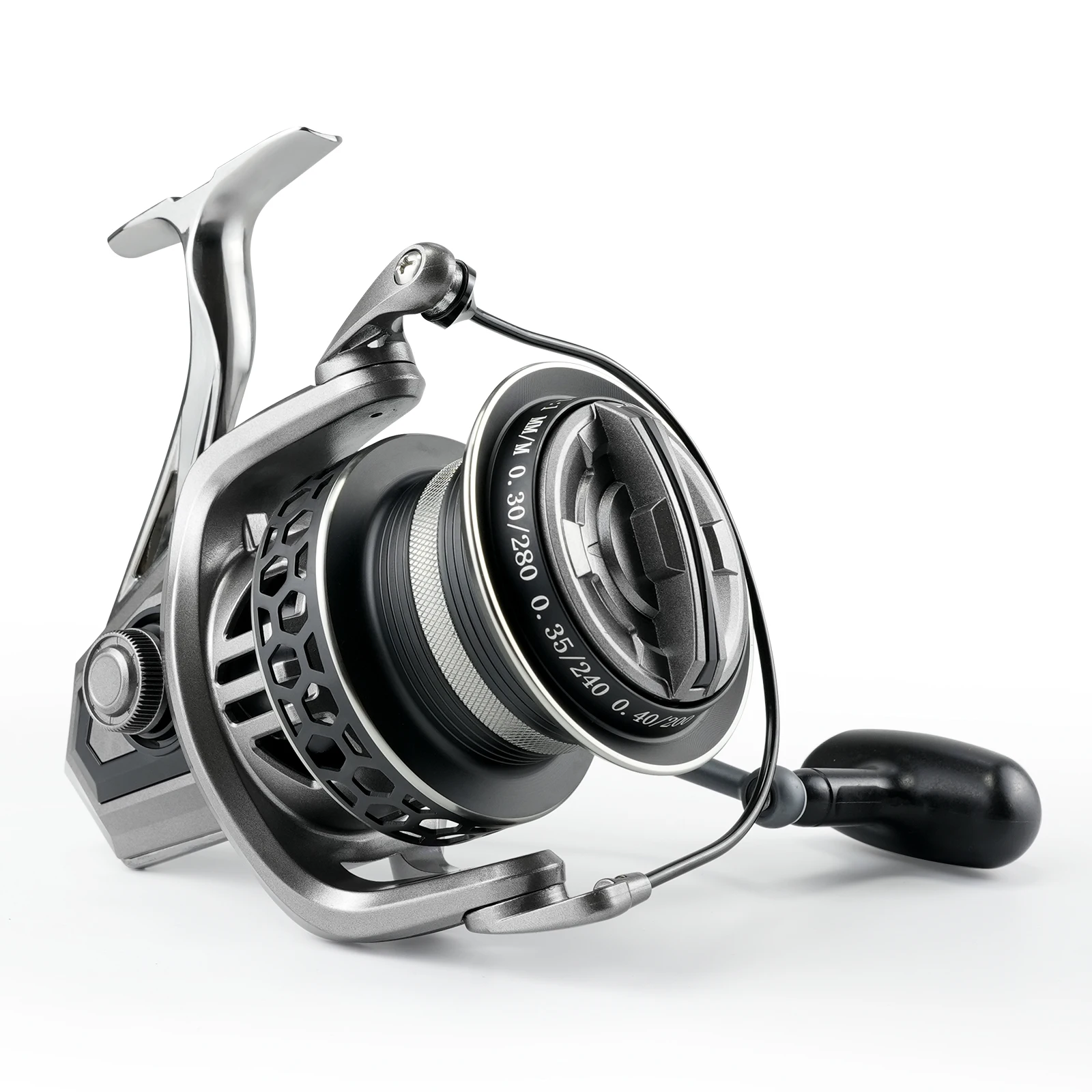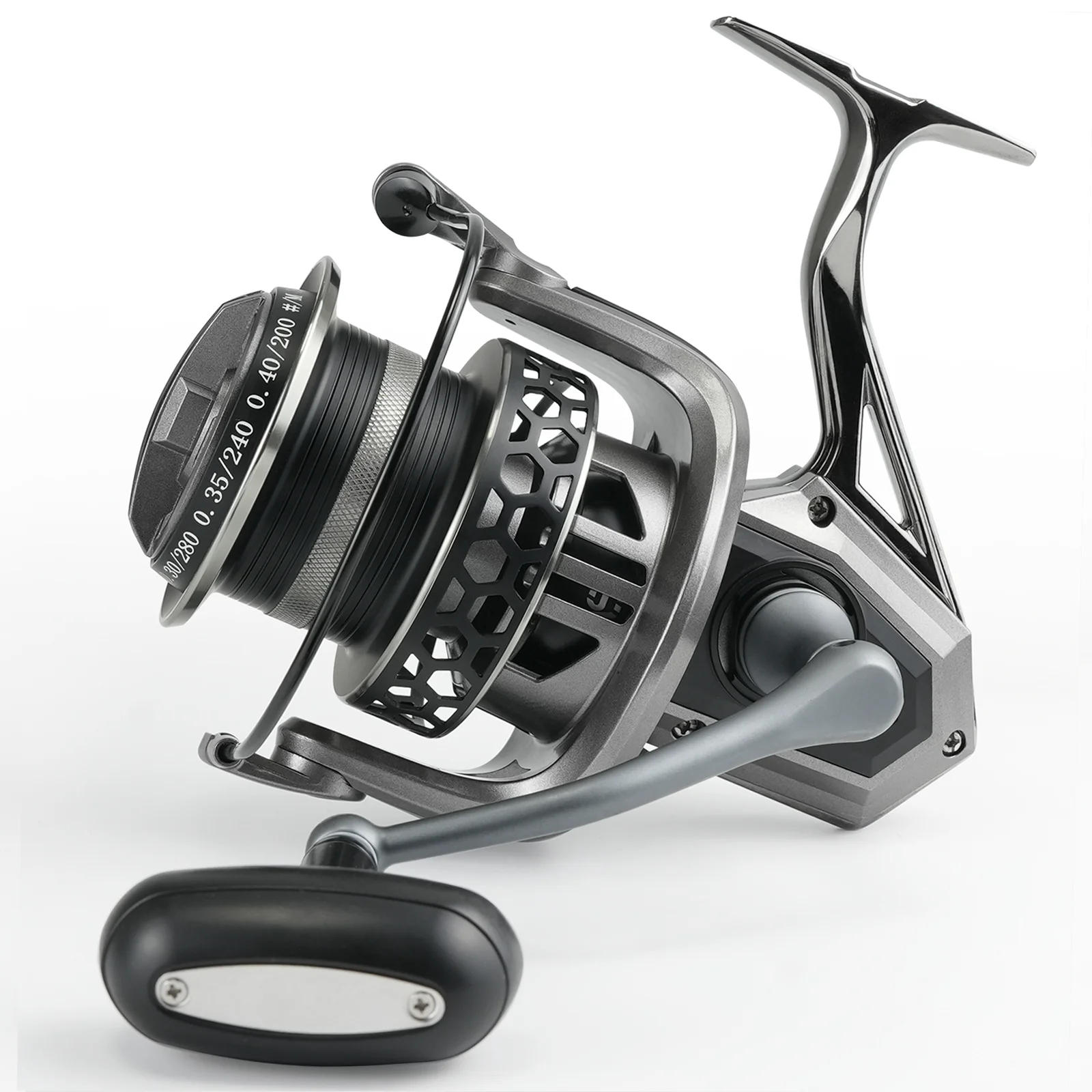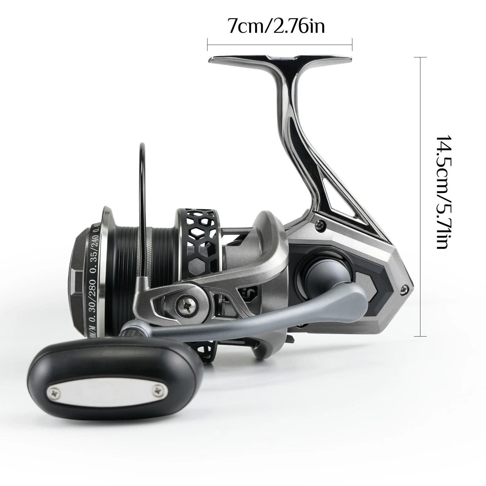 Carretes giratorios Rooblinos AG, Metal ultraligero, relación de engranaje 5,1: 1, 8000-12000, carretes de pesca de arrastre máximo grande para agua salada o dulce