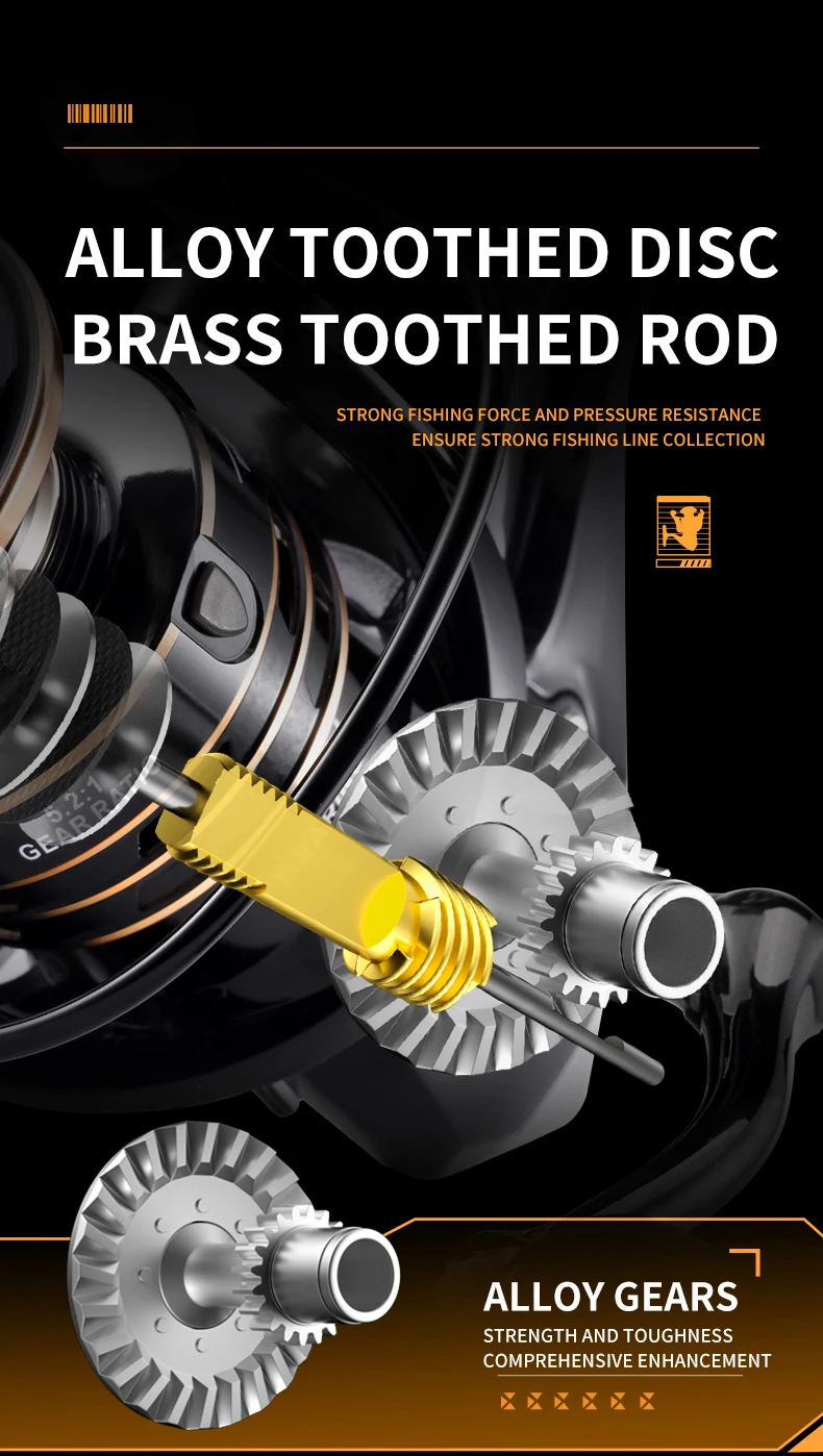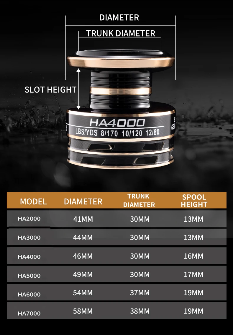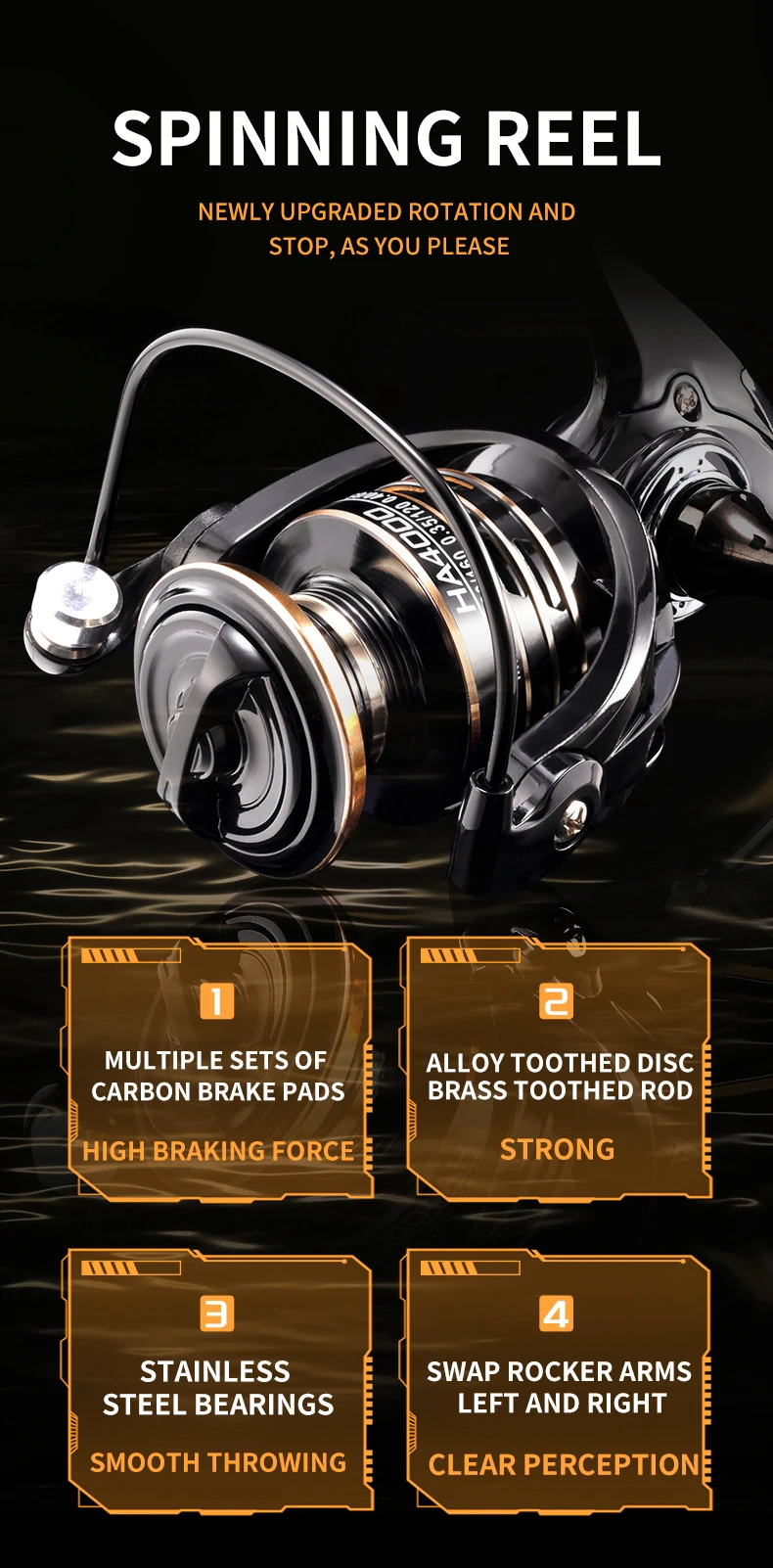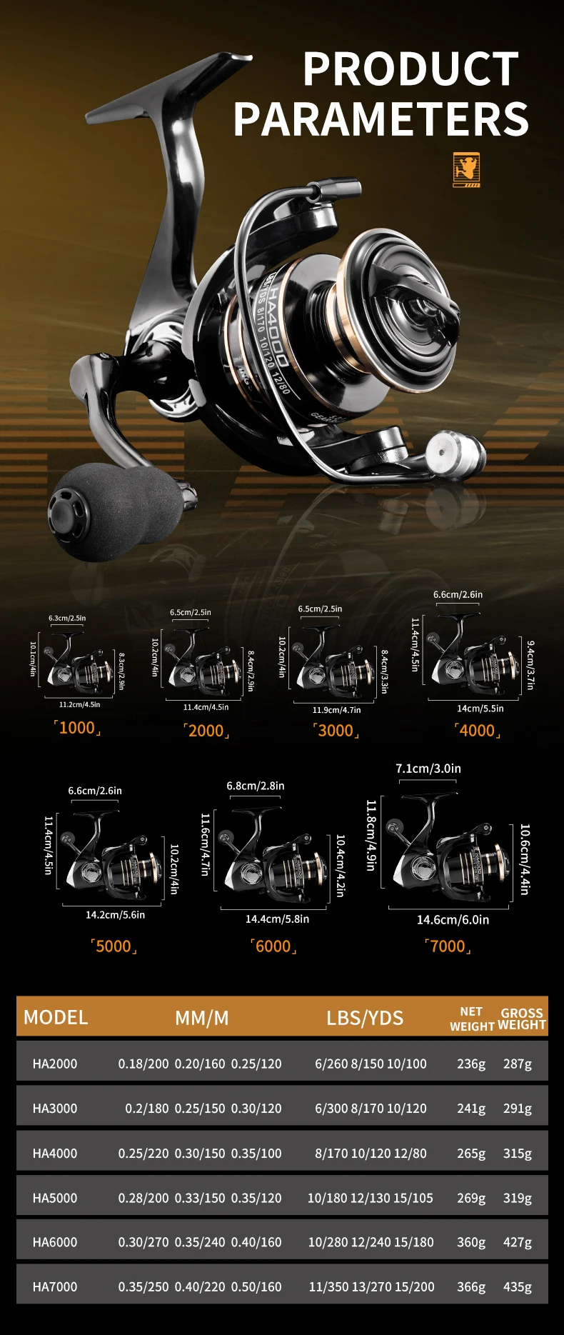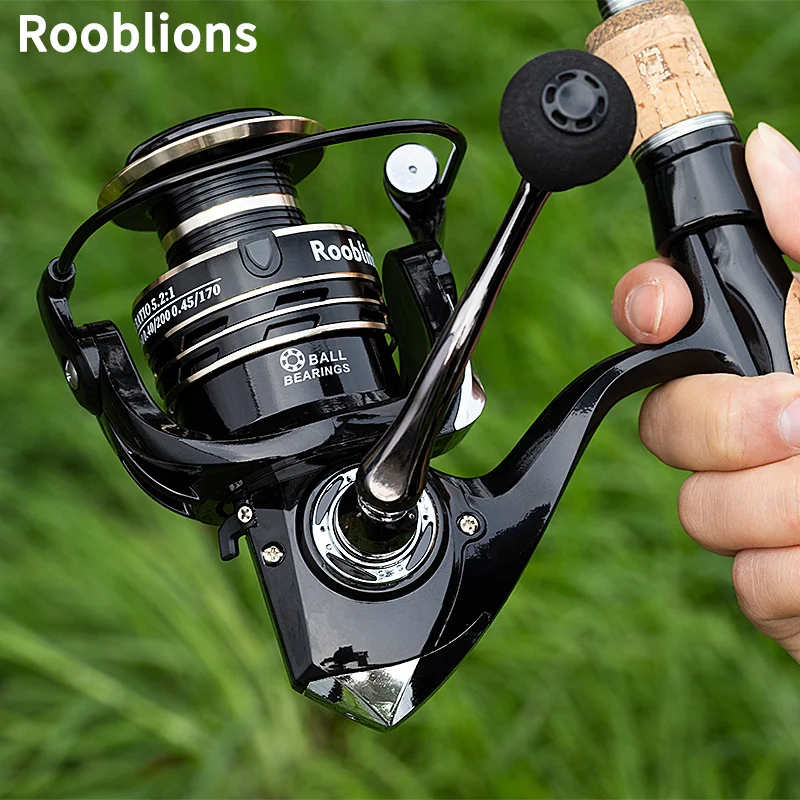 Carretes giratorios Rooblinos HA, Metal ultraligero, relación de engranaje 5,2: 1, 2000-7000, carretes de pesca de arrastre máximo grande para agua salada o dulce