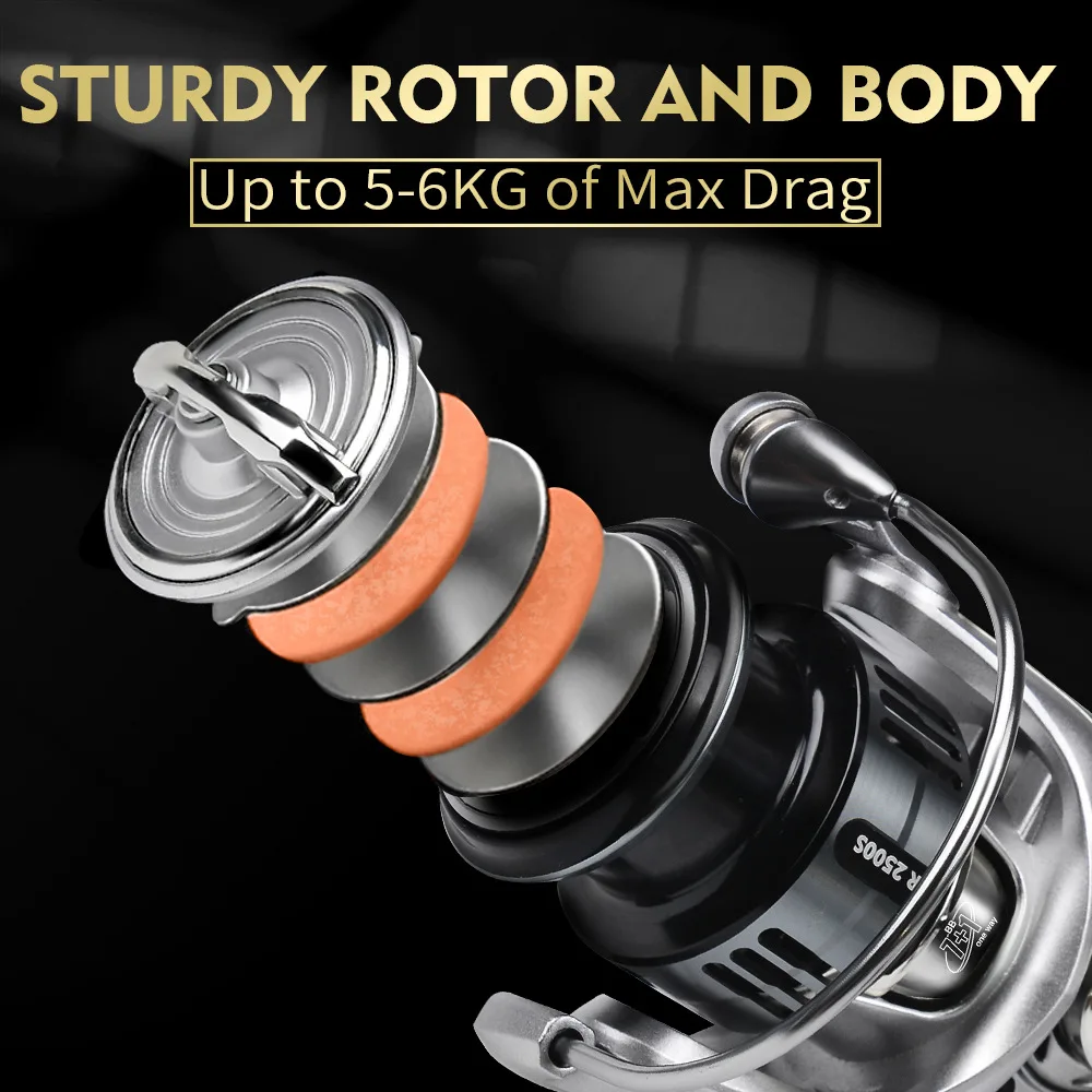 Carretes de pesca 5,2: 1 7 + 1BB MAX Drag 6KG Power Luya Spinning Reels Doble balancín Sistema de doble rodamiento Pesca con caña en alta mar