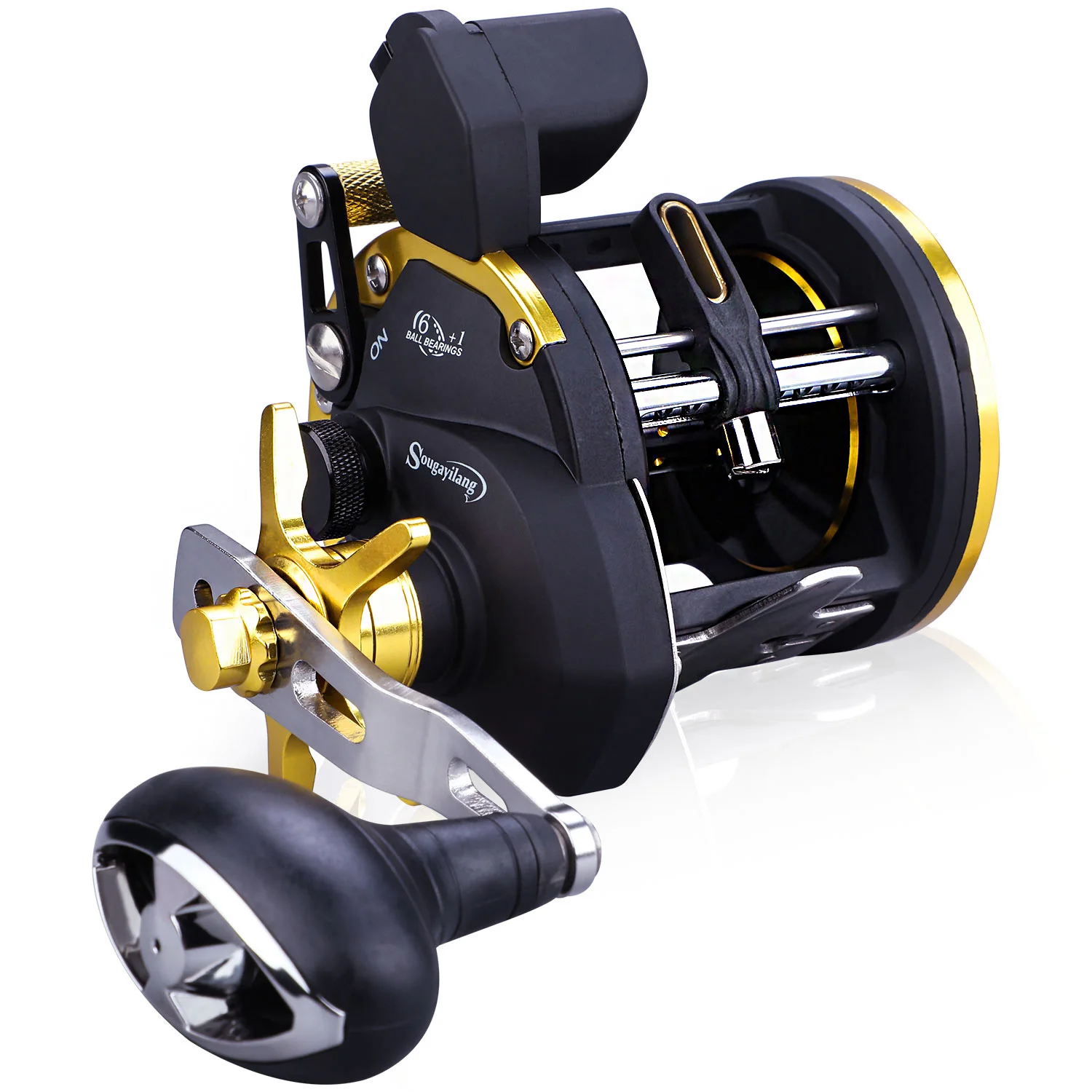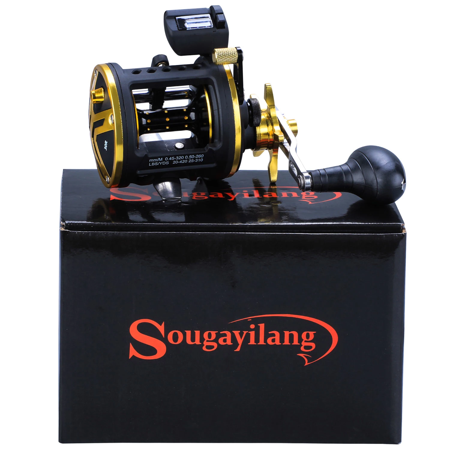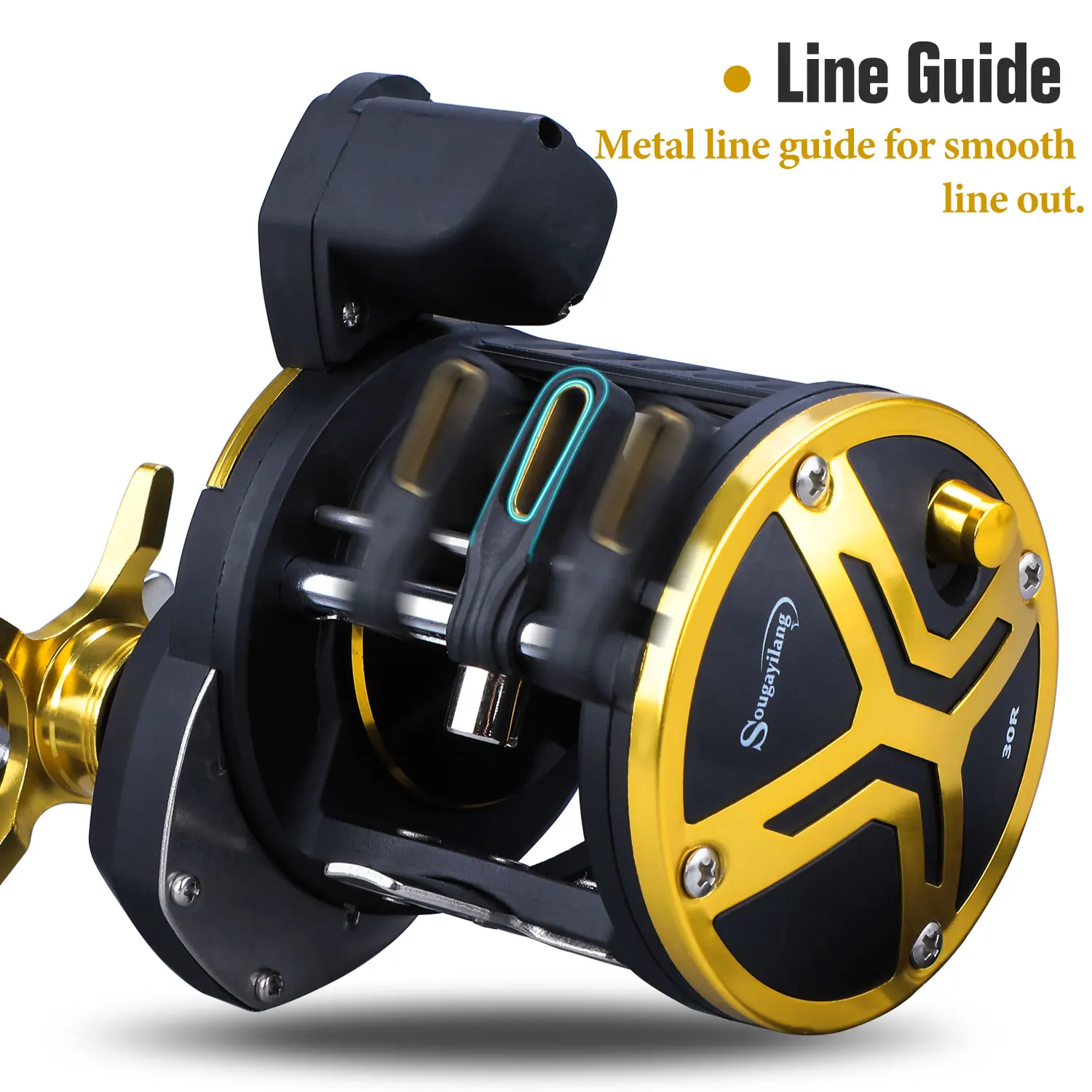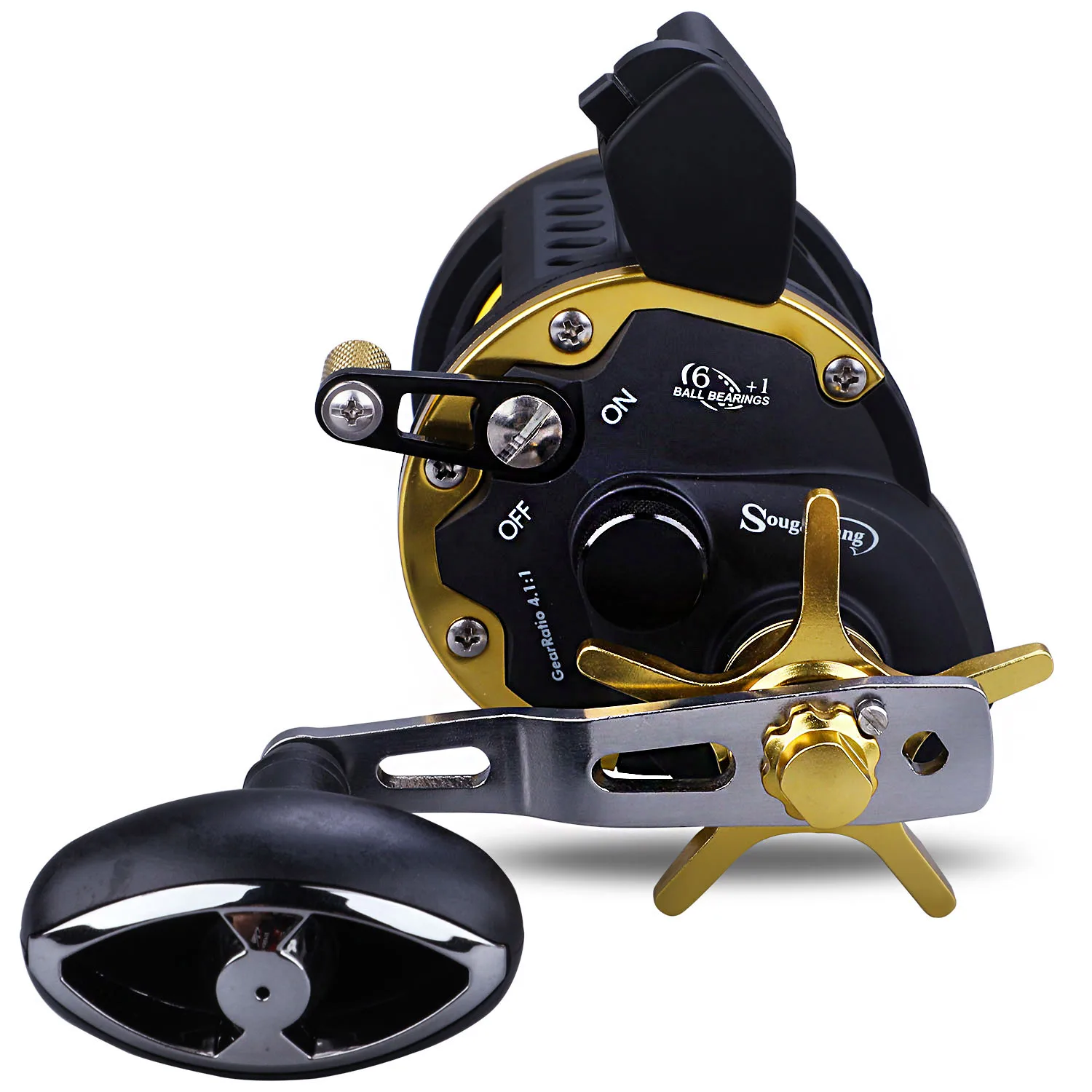 Carretes de pesca de agua salada Sougayilang, rueda de tambor fundida, carrete de lanzamiento para pesca en el océano, carrete redondo para Baitcasting Pesca