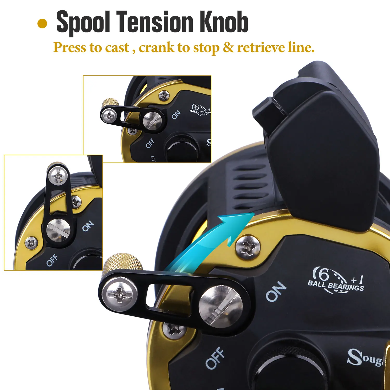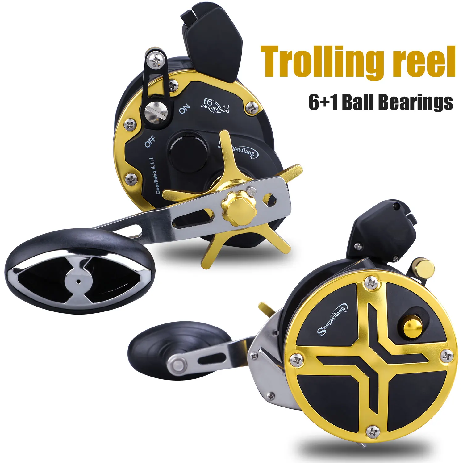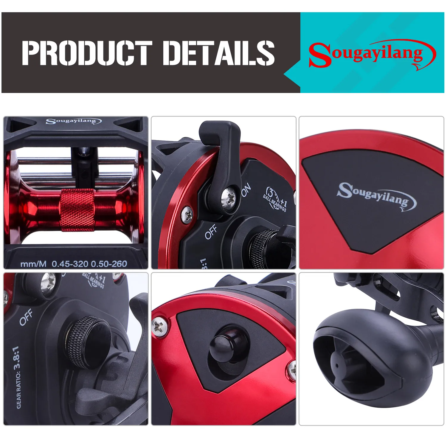Carretes de pesca de agua salada Sougayilang, rueda de tambor fundida, carrete de lanzamiento para pesca en el océano, carrete redondo para Baitcasting Pesca