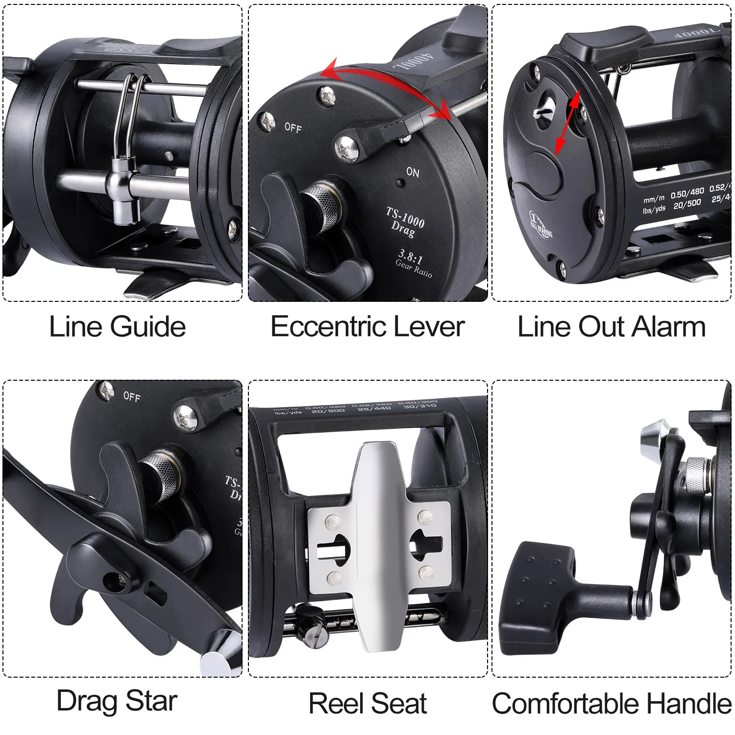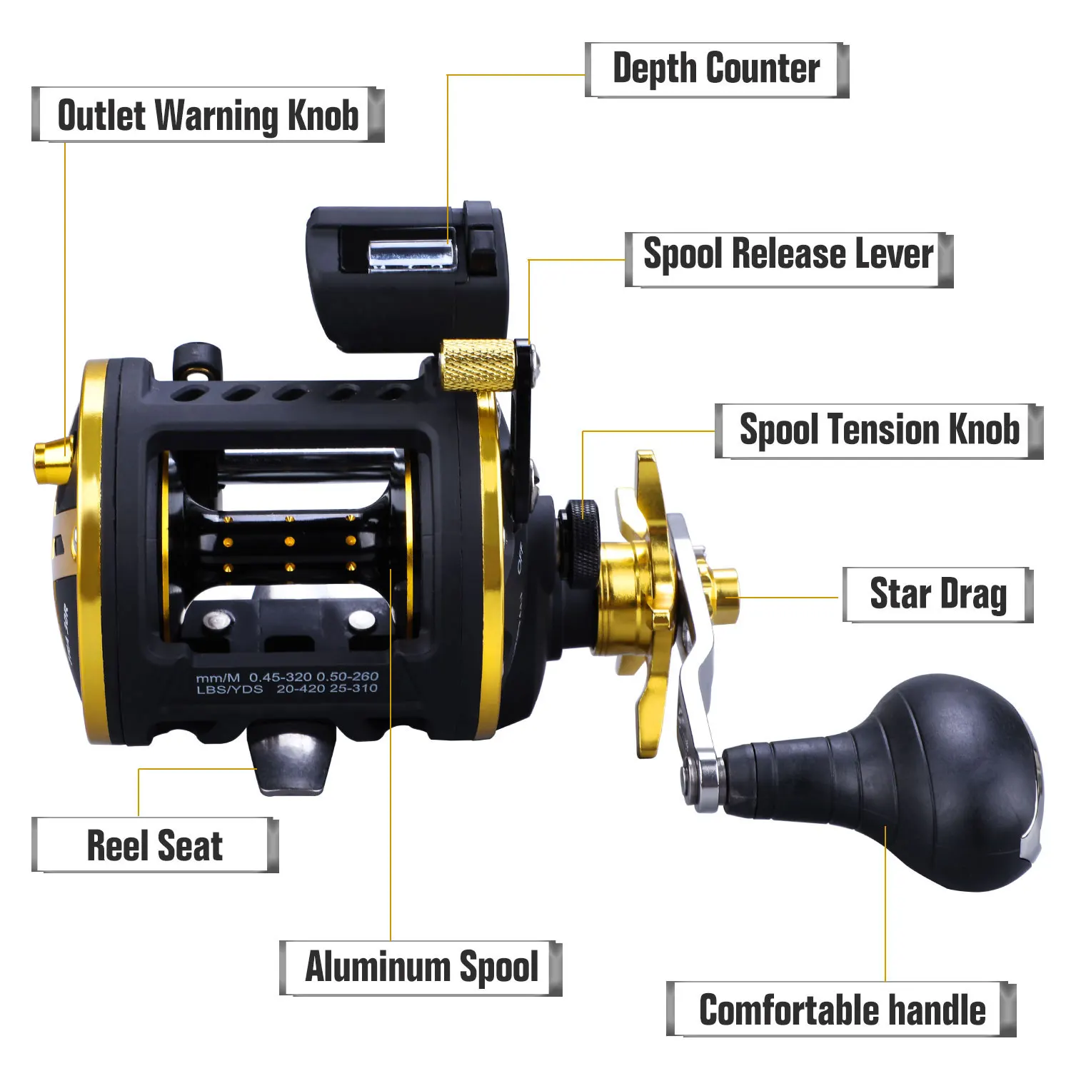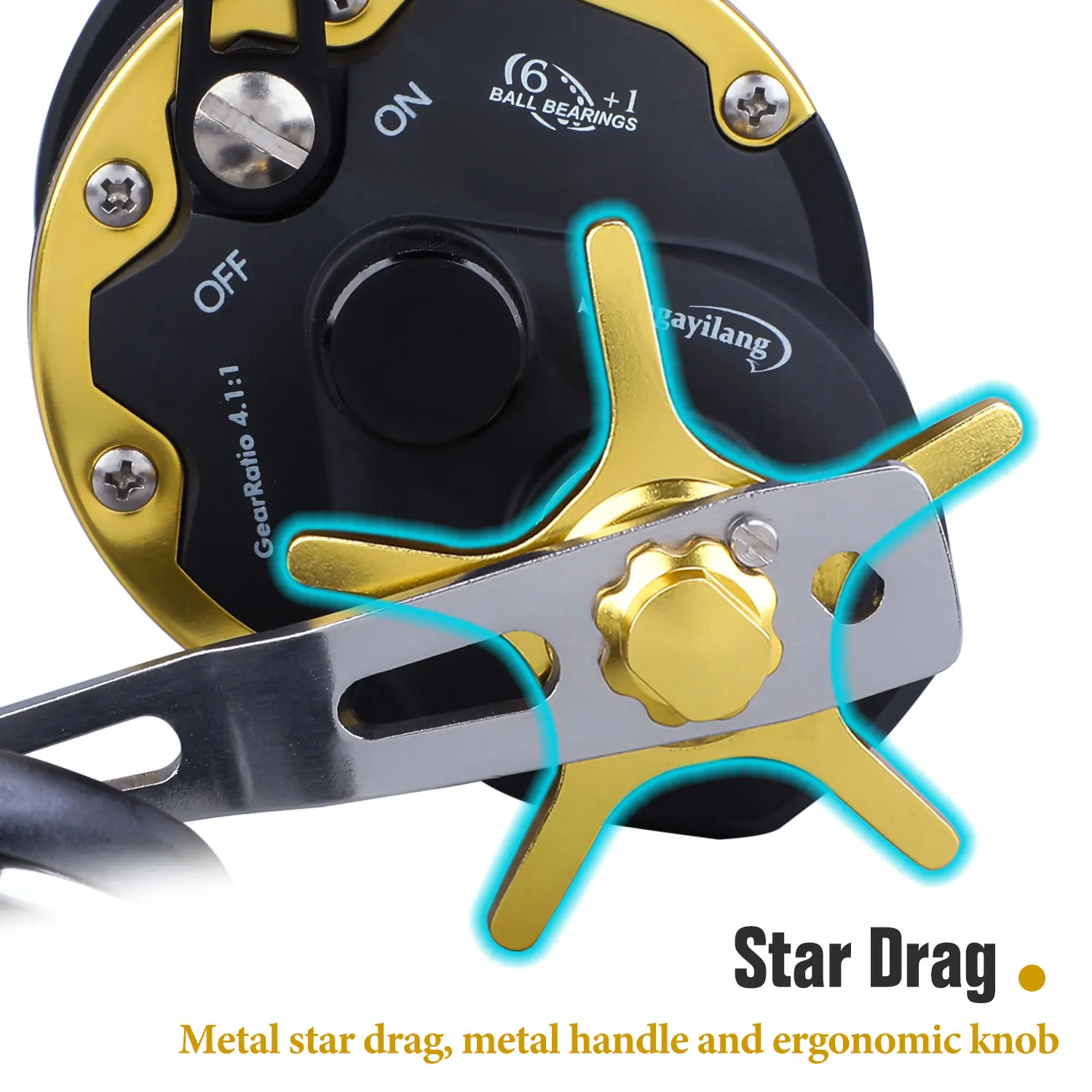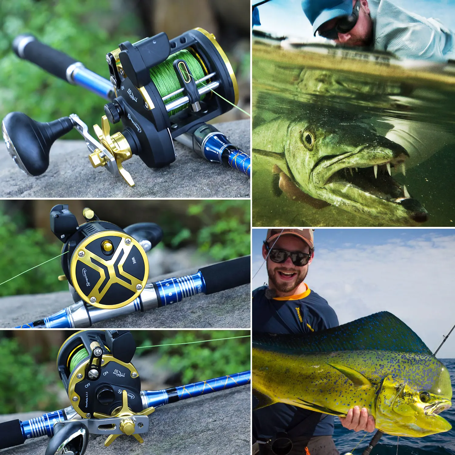 Carretes de pesca de agua salada Sougayilang, rueda de tambor fundida, carrete de lanzamiento para pesca en el océano, carrete redondo para Baitcasting Pesca