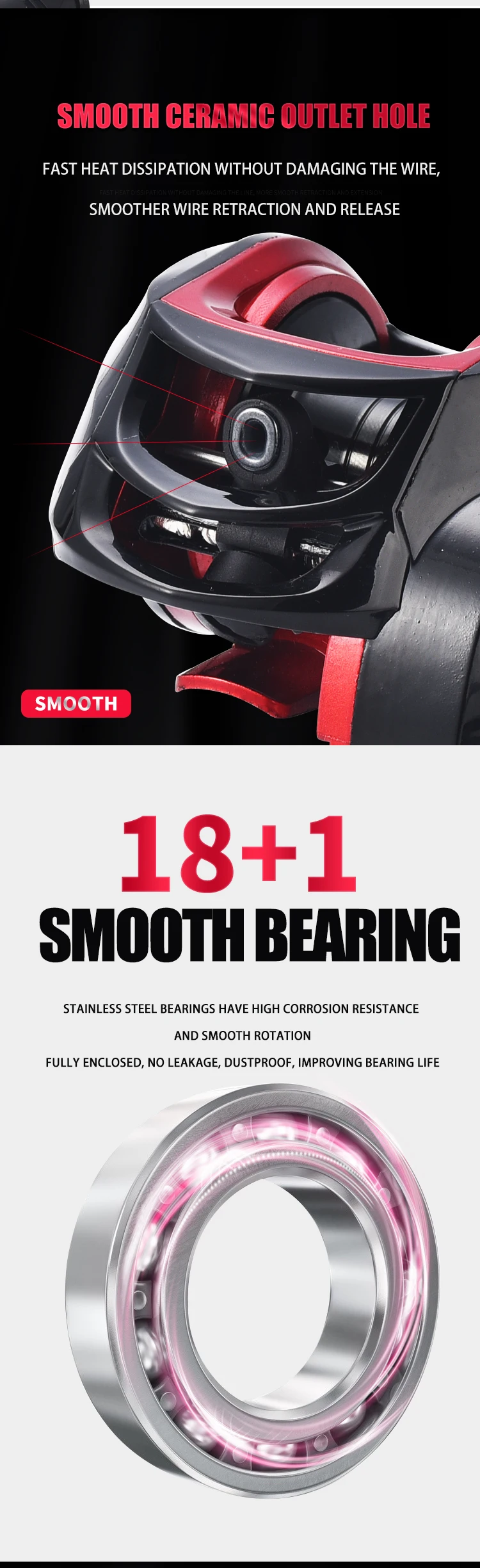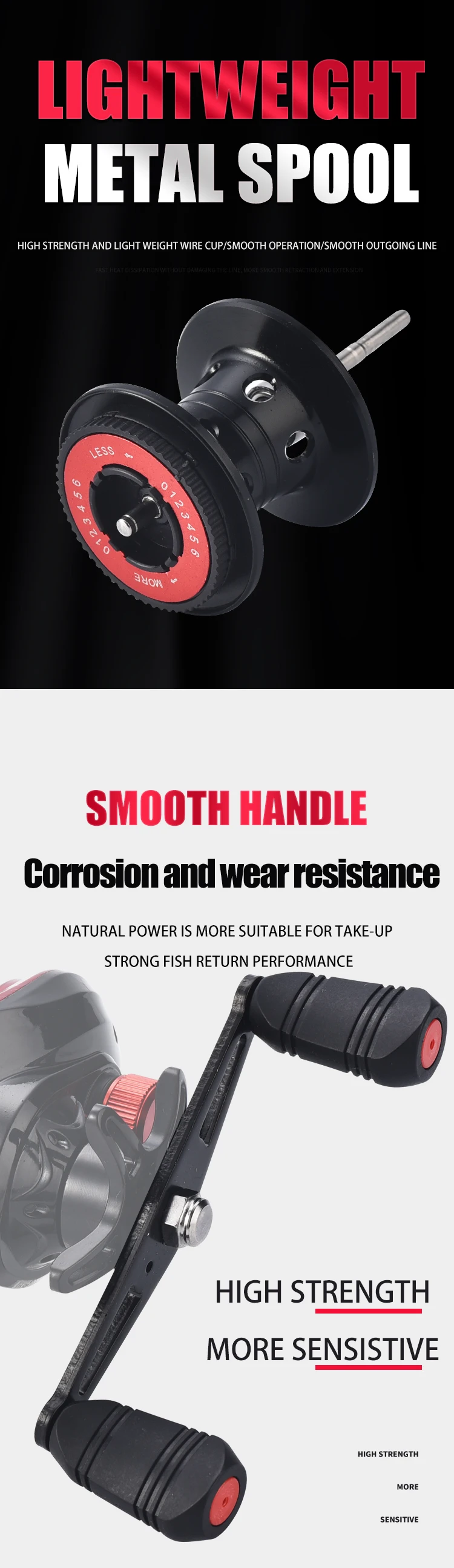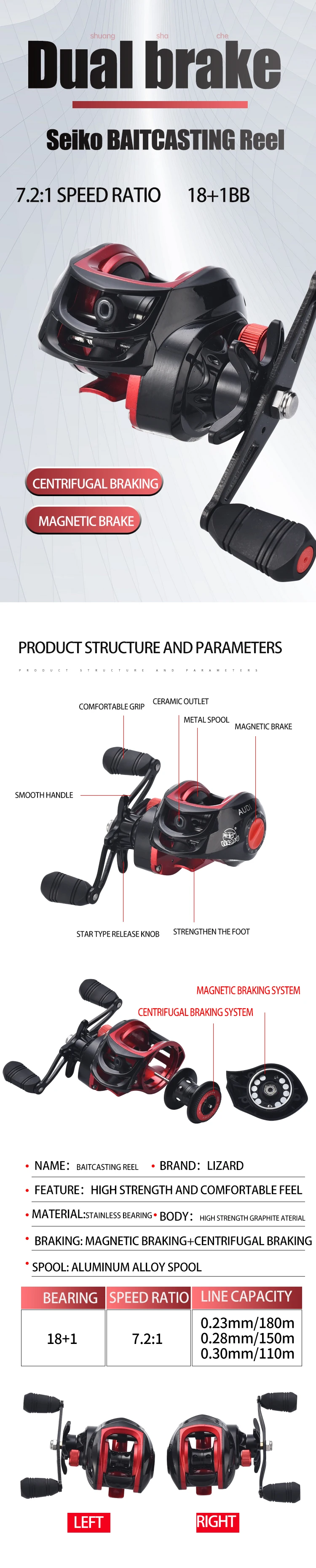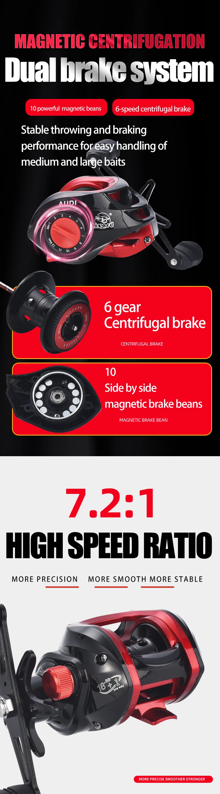 Carretes de pesca Audi ligeros Baitcasting, doble freno, alta velocidad, relación de engranaje 7,2: 1, arrastre máximo de 8kg, agua dulce