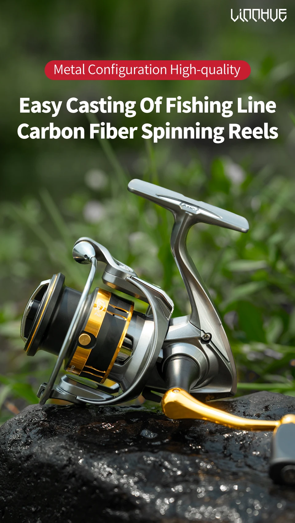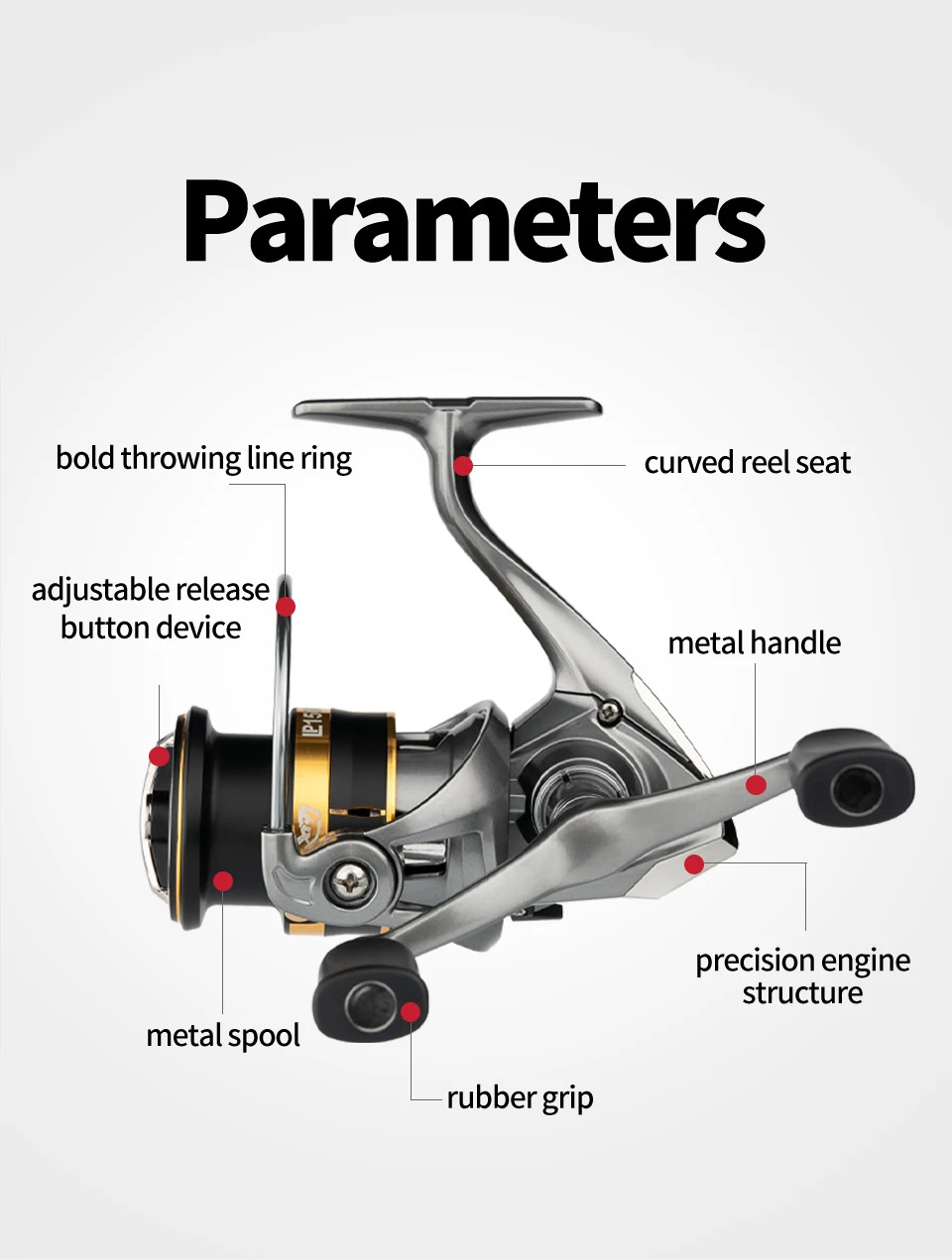 4. Guía de línea cromada: alinea automáticamente la línea en la ranura guía cuando el carrete se cierra, sin dañar la línea.