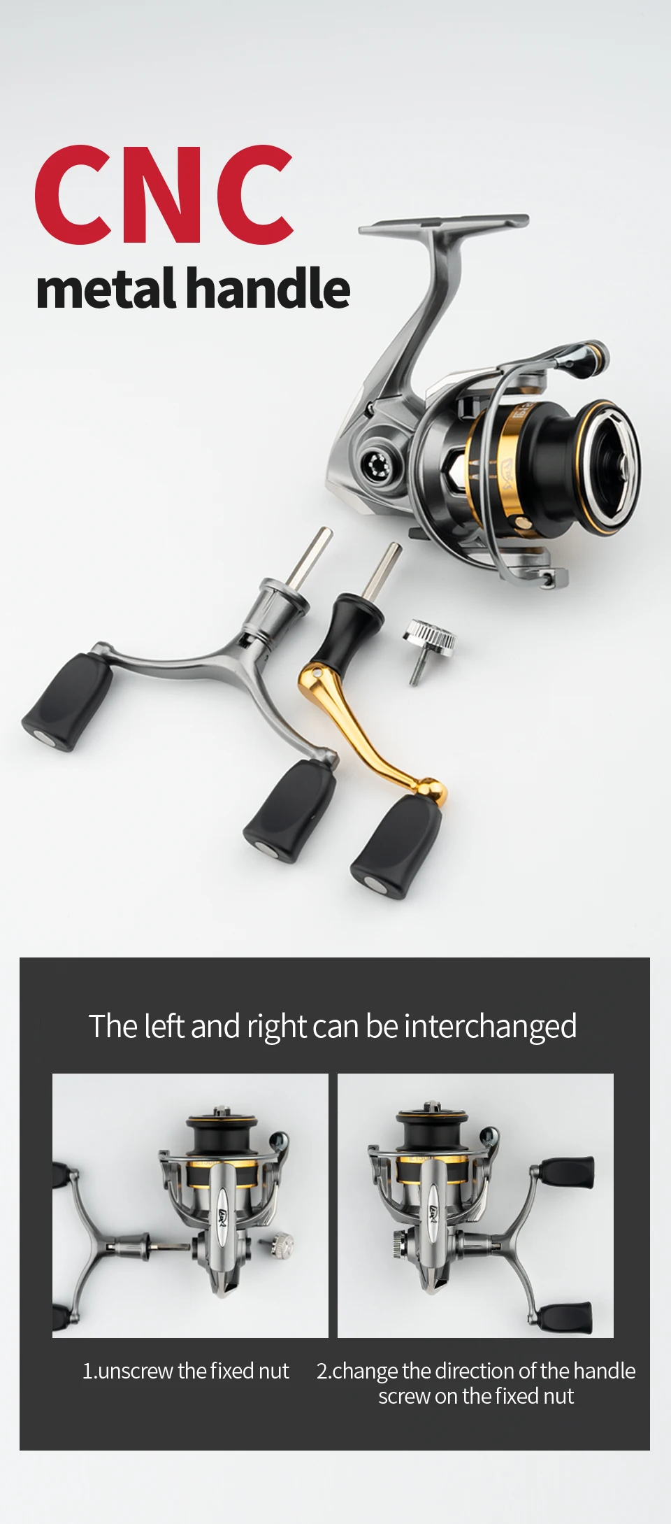 2. Mango de metal CNC, fabricado con precisión para mayor durabilidad y resistencia al impacto, no se rompe con tirones fuertes.