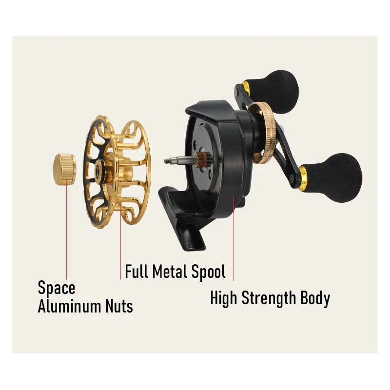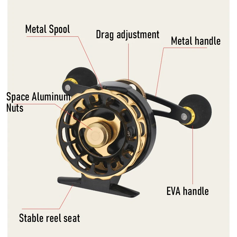 1. El carrete de hielo presenta un cuerpo de metal de alta resistencia que garantiza la dureza y la durabilidad necesarias en los duros elementos de invierno.