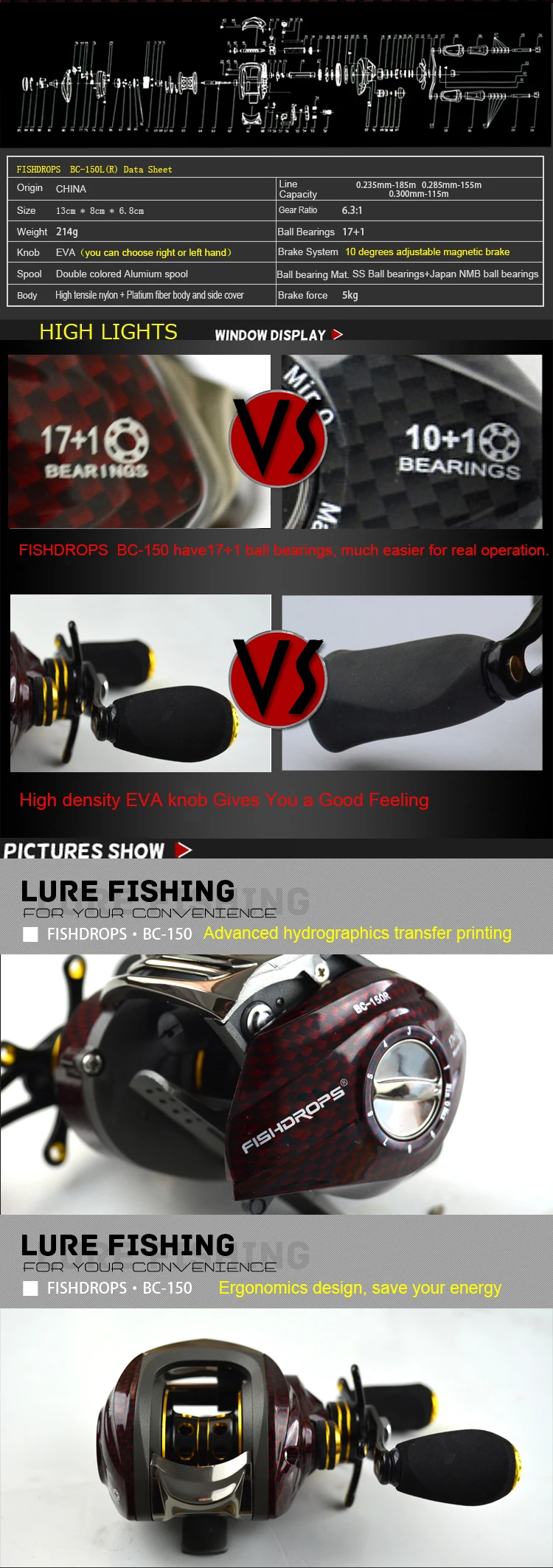 Carrete de Baitcasting con 18 rodamientos de bolas, equipo de pesca de carpa, cebo izquierdo y derecho, carrete de pesca de fundición, Pesca de Baitcasting de alta velocidad 6,3: