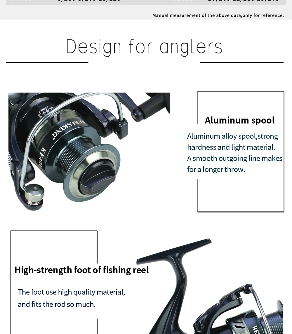 Carretes de pesca con freno de mano, rueda de 14 + 1 rodamientos, señuelo, freno trasero, carrete giratorio 5,2: 1, alimentador de carpa, fuerte arrastre, KF3000, 4000, 5000, 6000