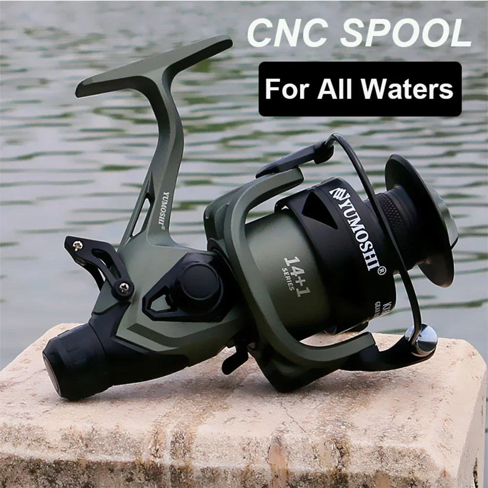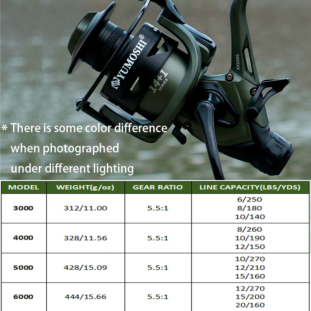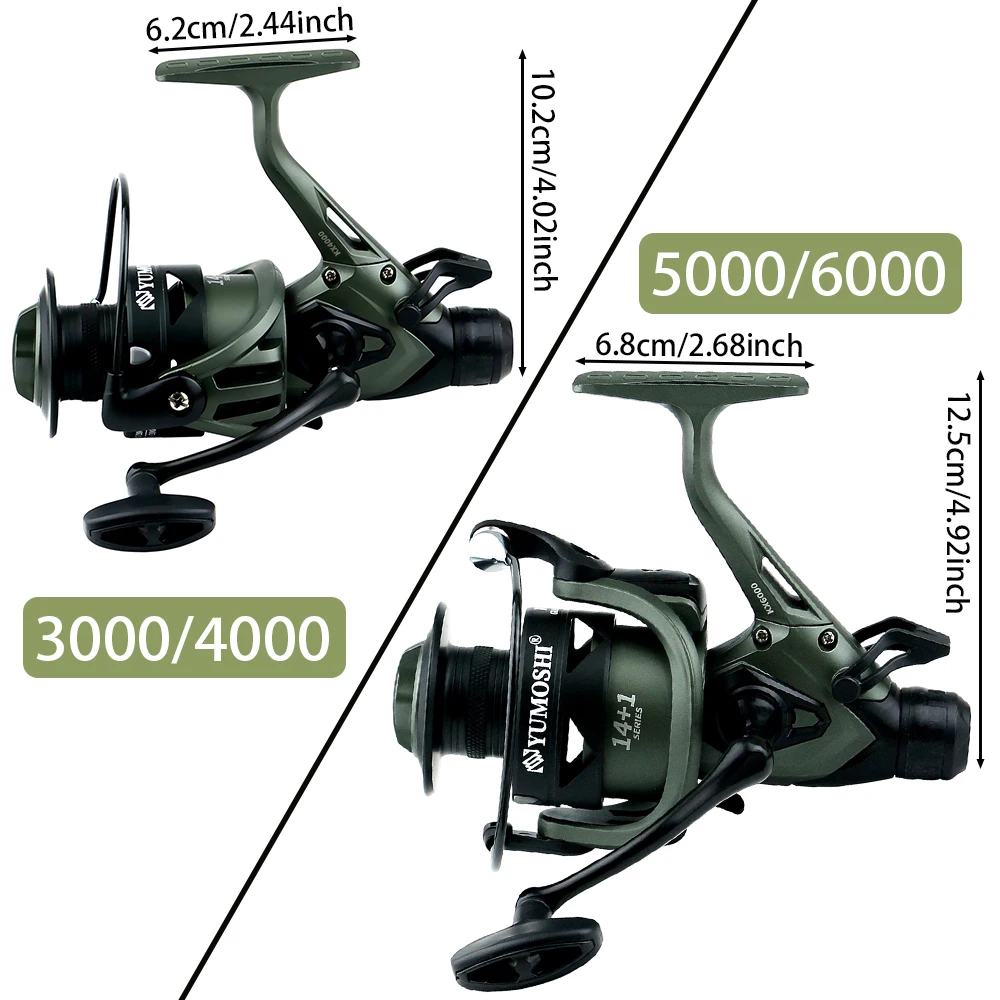 Carrete de pesca giratorio 3000-6000, carrete de Metal, fuerte fuerza de tracción, relación de engranaje 5.5:1, carrete de pesca de doble freno para todas las aguas
