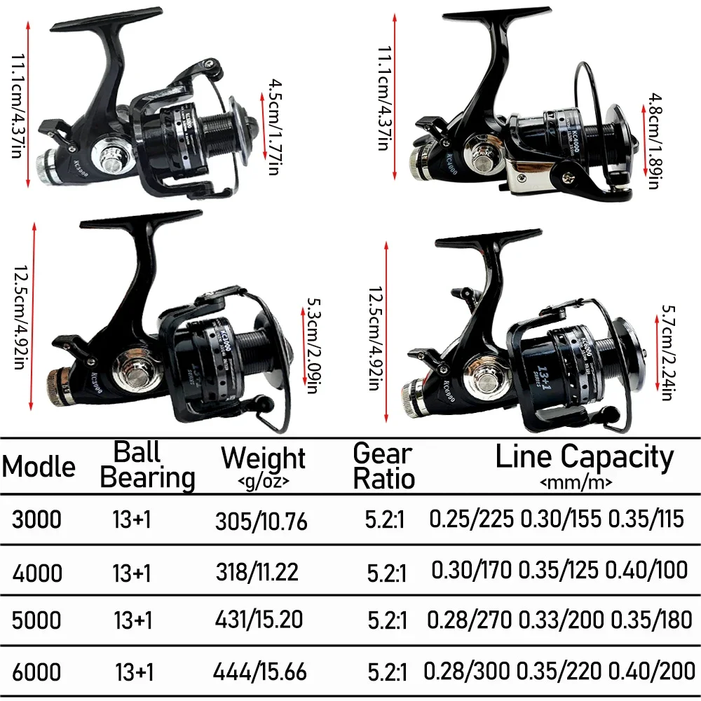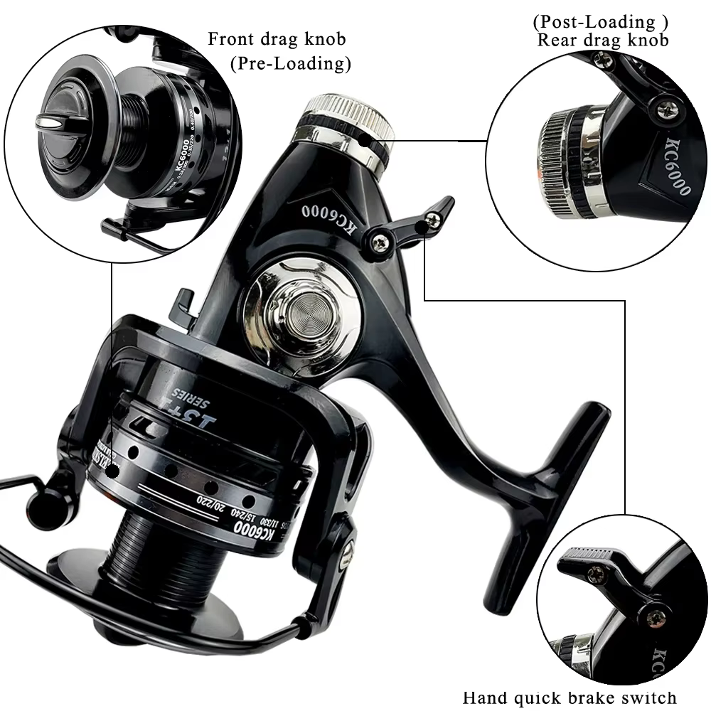Carretes de pesca giratorios, freno doble delantero y trasero rápido, serie 3000-6000, bobina de pesca de carpa de agua dulce para exteriores, relación de velocidad 5,2: 1