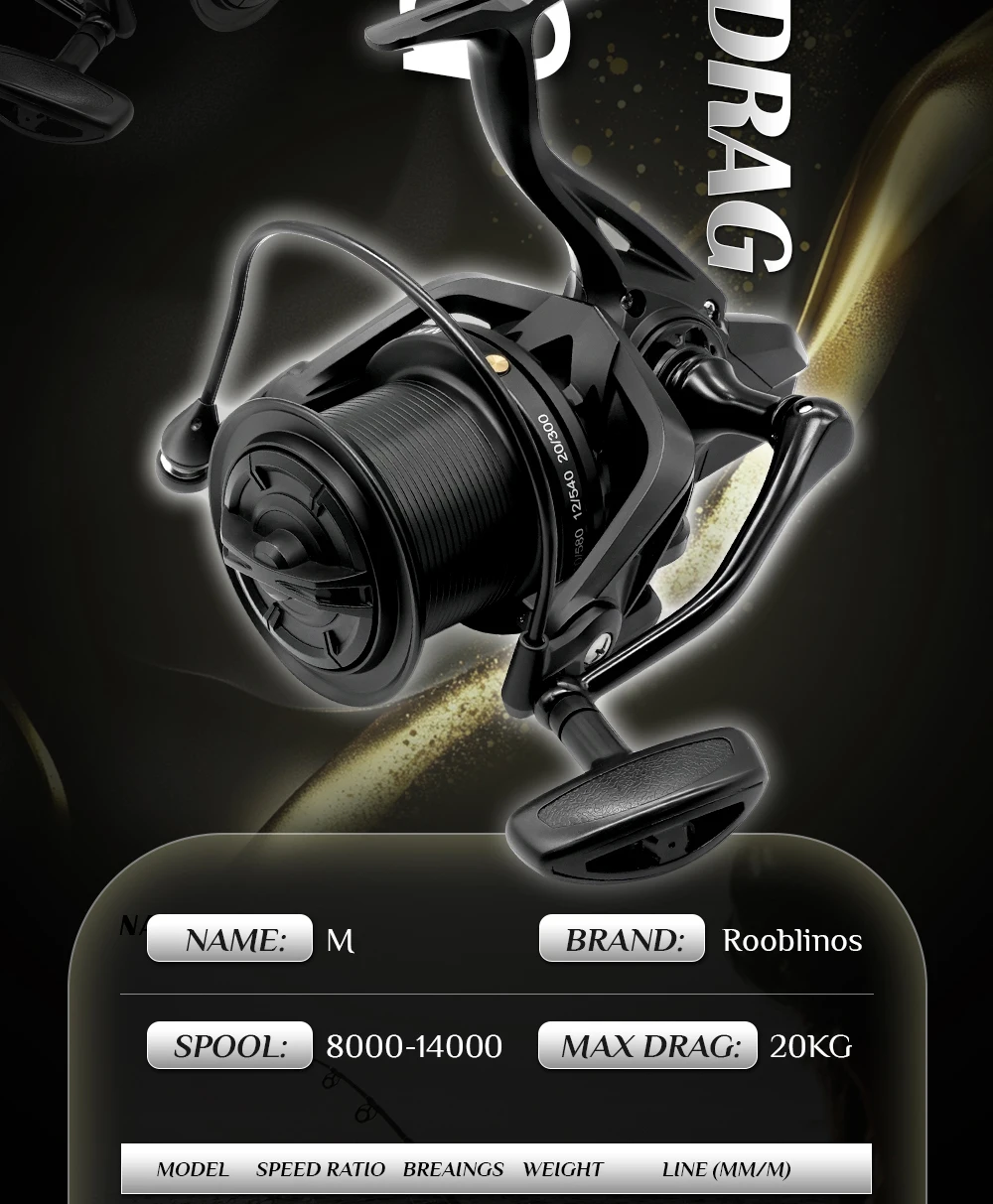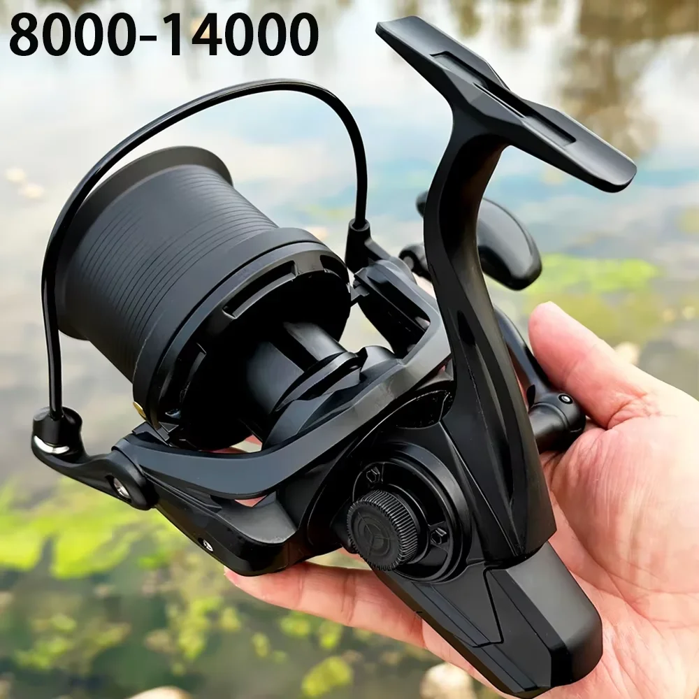 Carretes de pesca giratorios grandes 8000 9000 10000 12000 rueda de fundición larga arrastre 20KG carrete potente para pesca de carpa barco de mar bobina de pescado