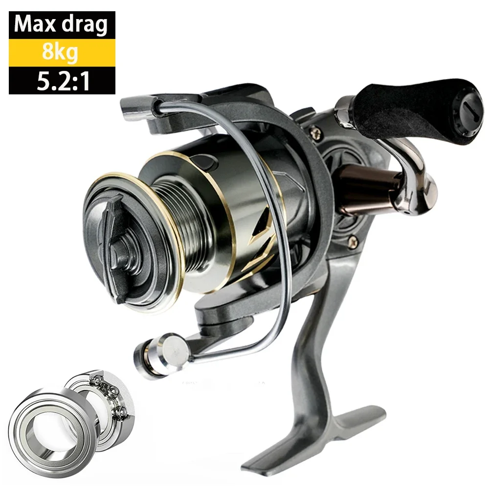 Carrete giratorio ligero 2000 3000 4000 5000 6000 7000 copa de alambre de Metal 5,2:1 aparejos de pesca duraderos 8kg arrastre máximo para carpa lubina