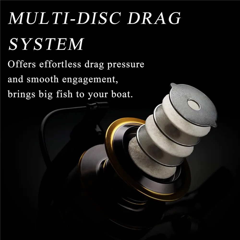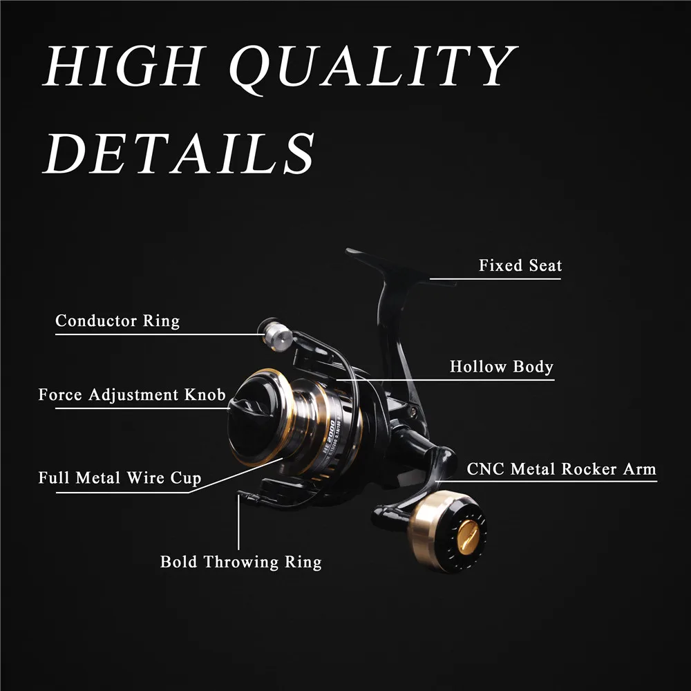 Carretes de pesca giratorios de marca HE1000-7000 carrete de agua salada 12BB Drag 10Kg carrete de agarre de bola de Metal carrete de pesca de carpa