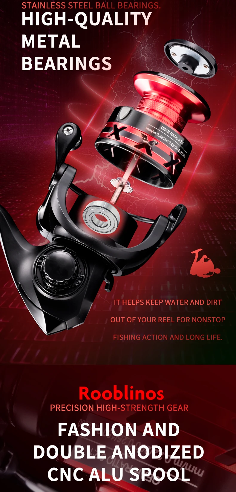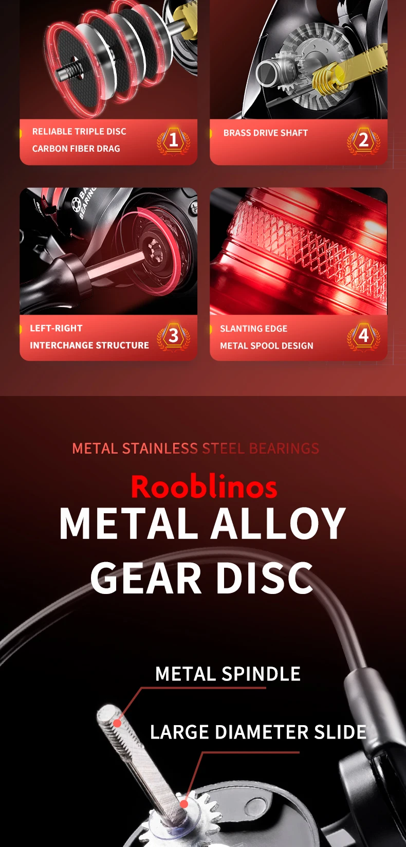 • Material de alta calidad:El carrete de pesca giratorio Rooblinos CR está hecho de metal duradero, lo que garantiza un rendimiento duradero y resistencia al desgaste.