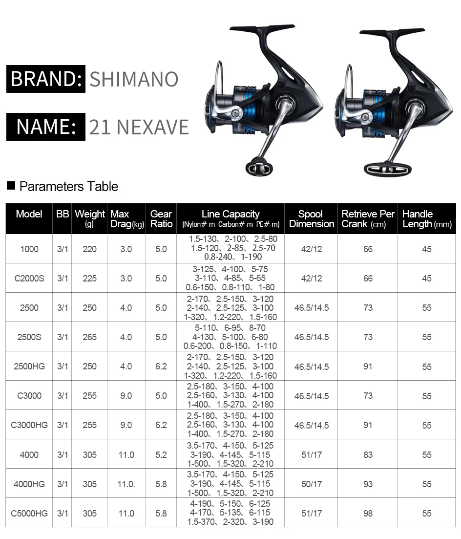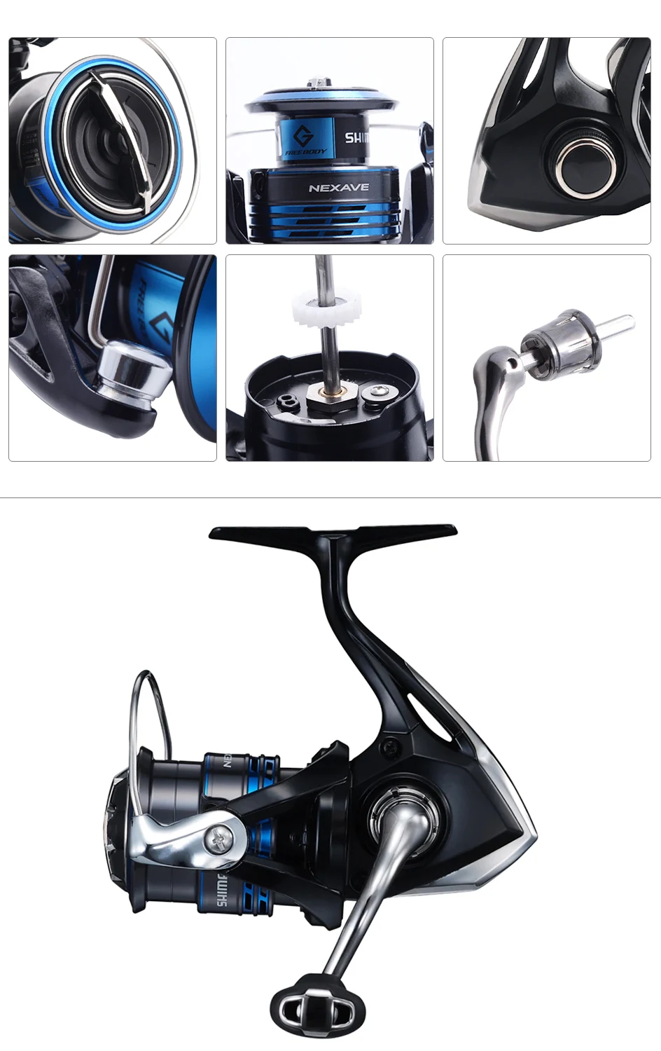 Shimano no sólo diseñó la nueva serie de carretes giratorios Nexave para lucir bien en la mano, los ingenieros construyeron los carretes Nexave con forma y función, y con los mismos estándares de calidad Shimano, para beneficiar a los pescadores de todas las edades durante su próxima aventura de pesca.El Nexave recién rediseñado cuenta con el sistema de gestión de línea de propulsión de Shimano, un labio de carrete en ángulo especialmente diseñado, para proporcionar a los pescadores lanzamientos más largos y precisos al permitir que el hilo deje el carrete en bobinas más pequeñas con menos fricción.La serie Nexave también cuenta con la tecnología G-Free Body de Shimano para beneficiar a los pescadores con menos fatiga y mayor comodidad de lanzamiento al mover el centro de gravedad más cerca de la mano del pescador.Los pescadores que buscan su primer pez o su próximo trofeo encontrarán el rendimiento de bobinado necesario en la serie de carretes giratorios Nexave.