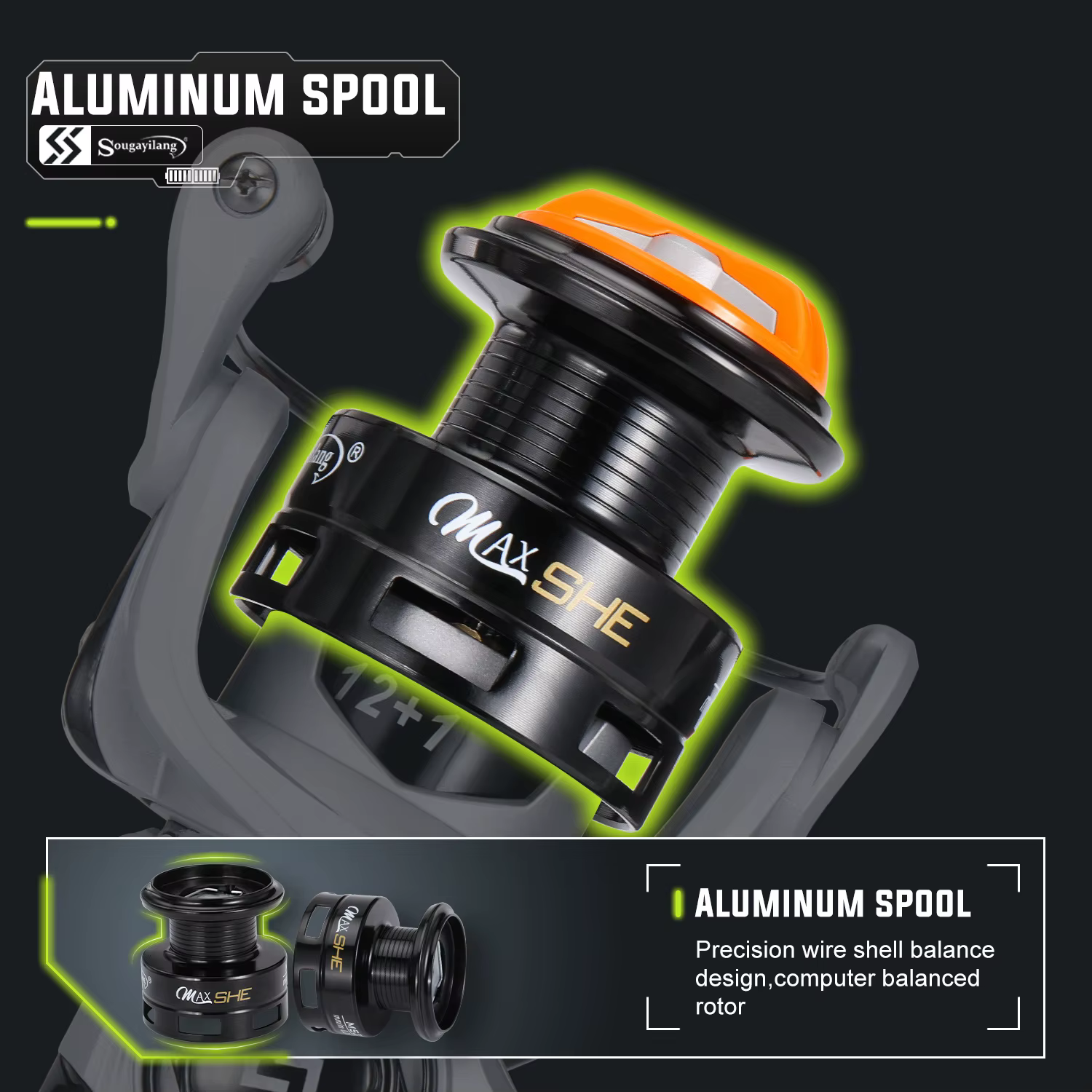 Carretes de pesca giratorios Sougayilang, arrastre máximo 2000, carrete giratorio de 10kg, relación de engranaje 5,2: 1, aparejos de pesca para pesca en agua dulce