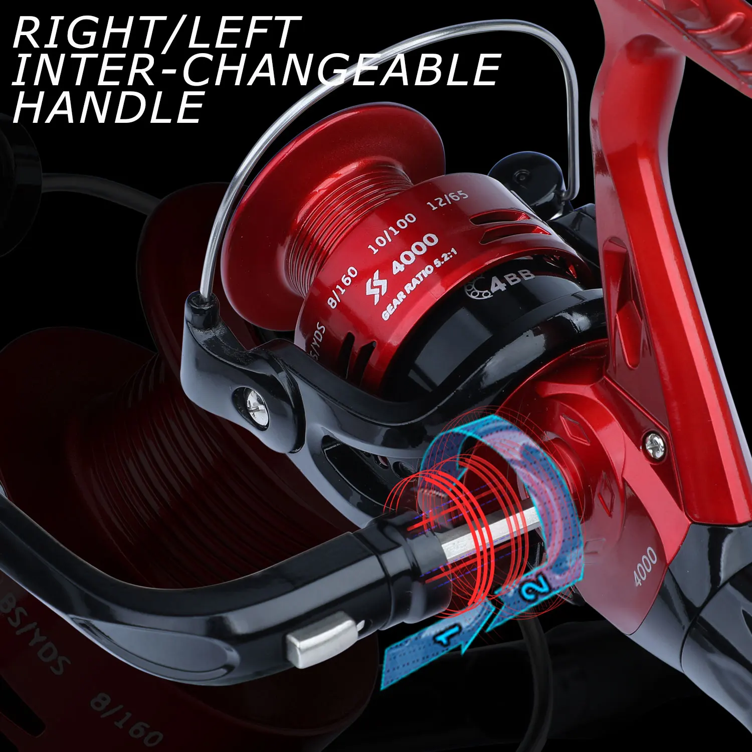 Carretes de pesca giratorios Sougayilang, carrete de pesca ultraligero serie 4000, relación de engranaje 5,2: 1, 500 KG, aparejos de carrete de pesca de carpa