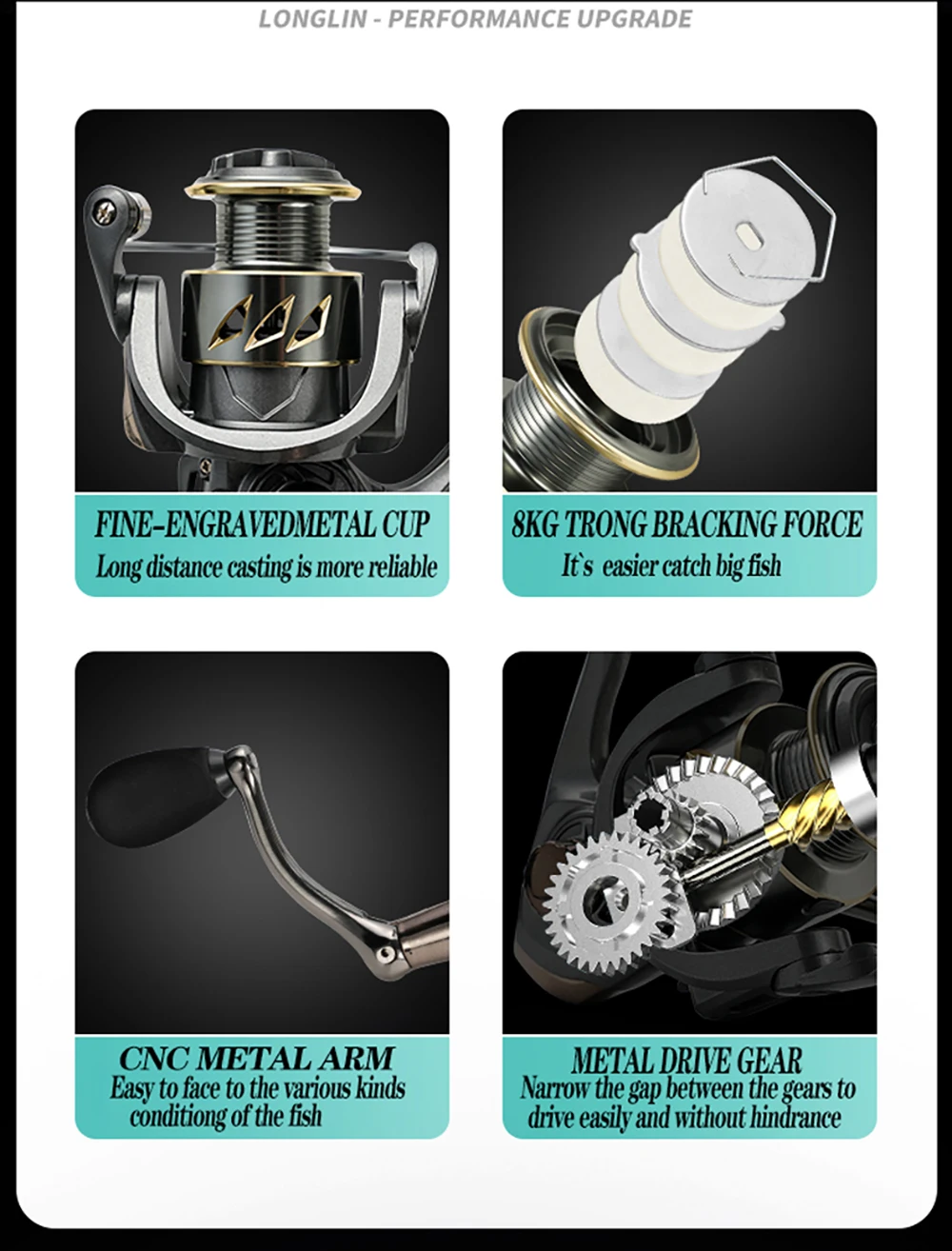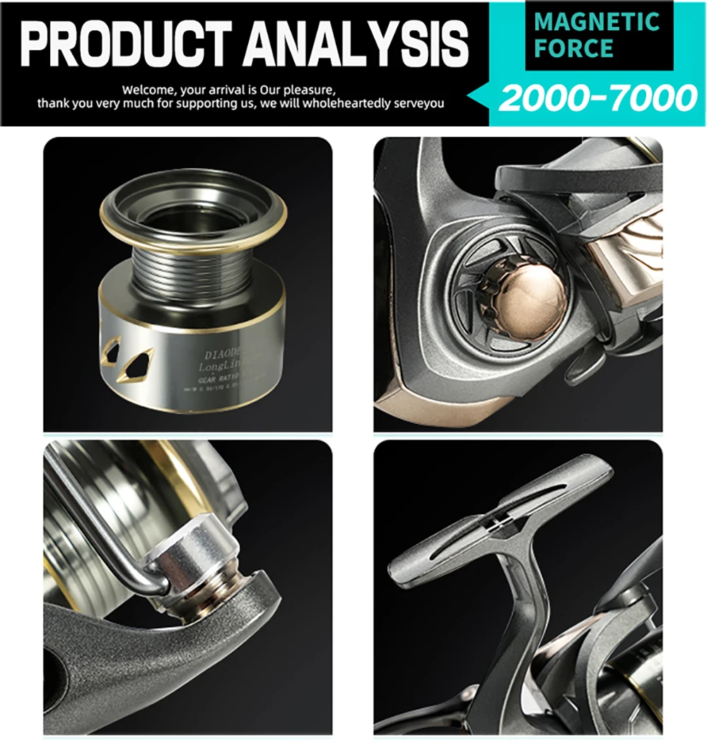 1. Large-capacity metal line cup, sturdy and durable, not easily deformed, and the line outlet is smooth without damaging the fishing line.